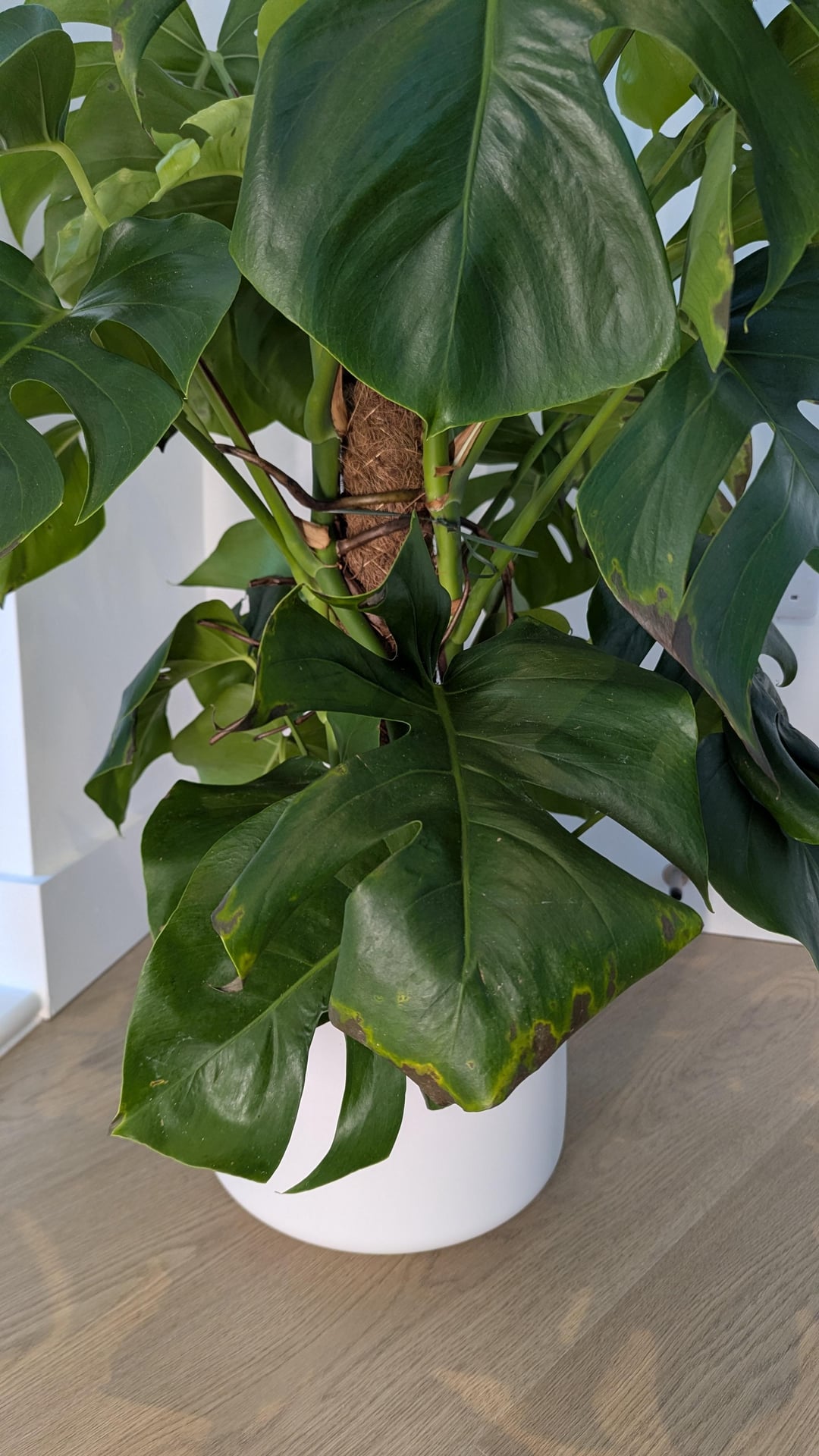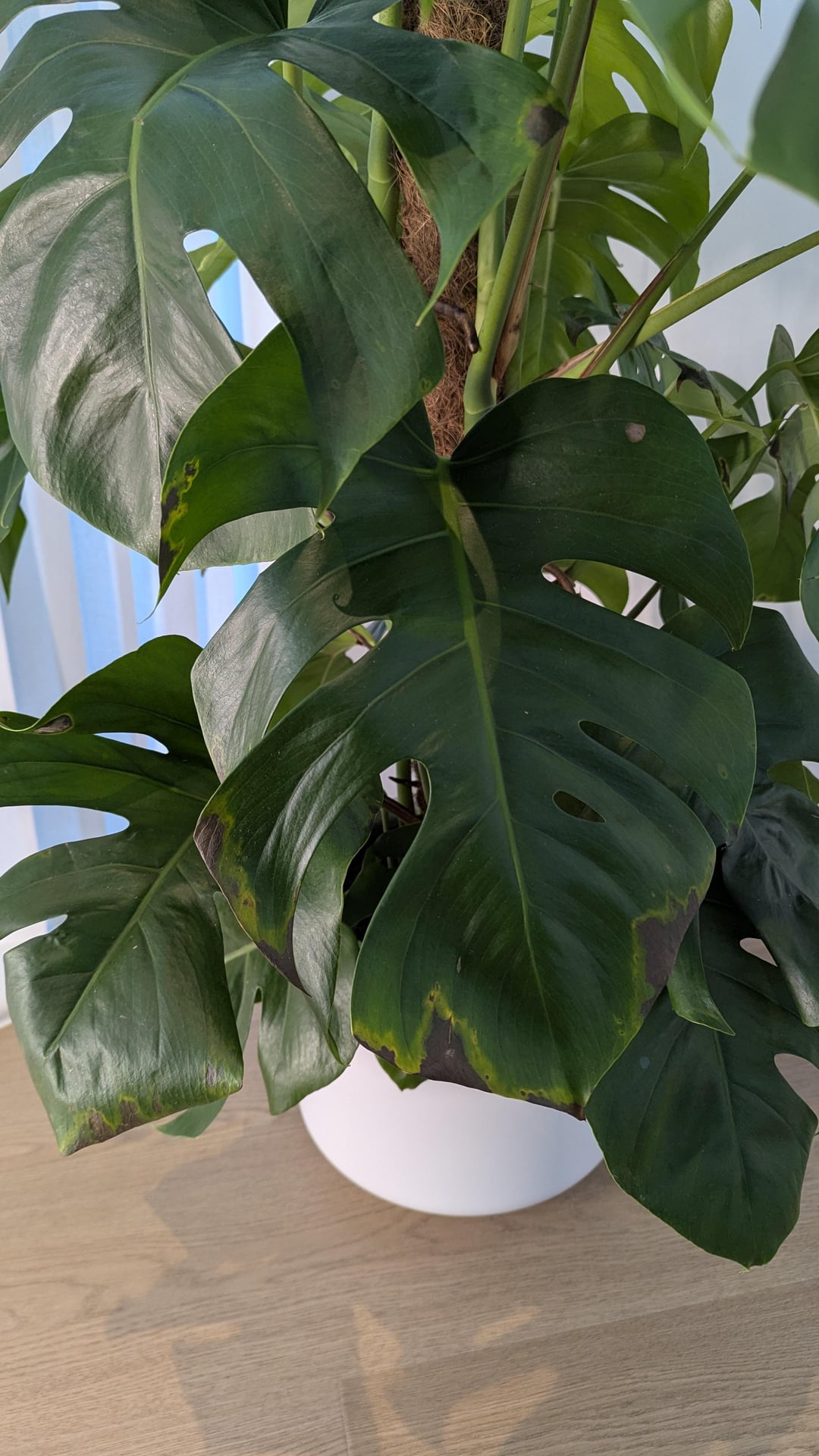 1ヶ月前に苗を入手し、冬なので一度水やりをしました。植物全体に害虫がついていないか調べました。順調に成長していますが、下の葉に黒い斑点が見え始めています。何を修正すべきかについて何か提案はありますか?