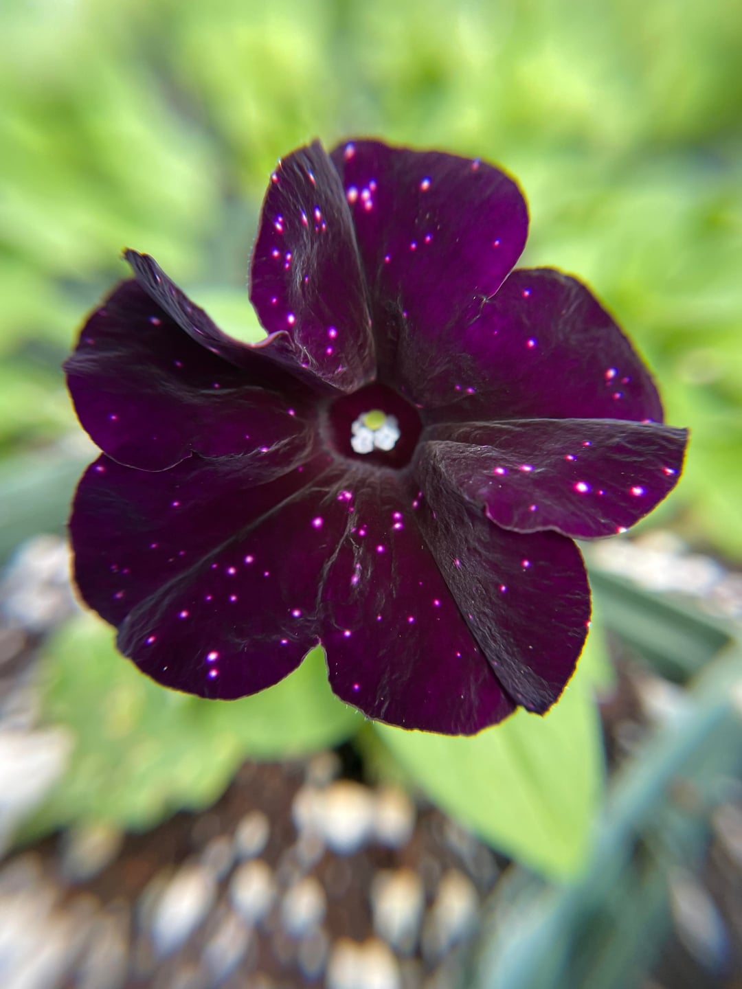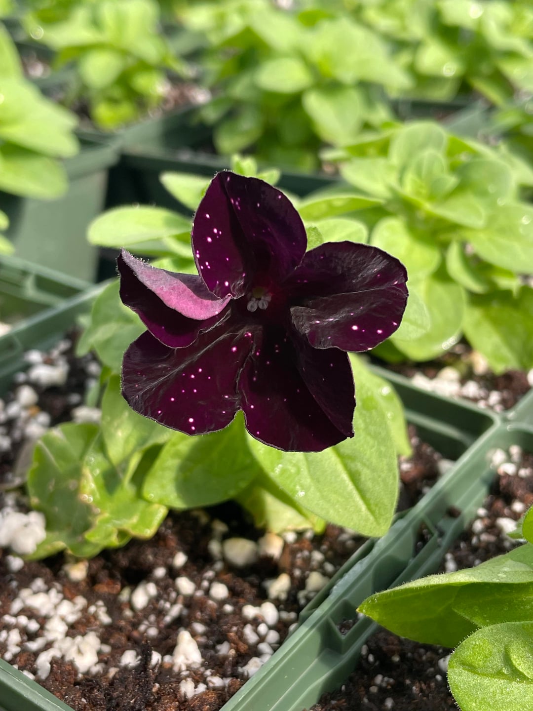 ペチュニア「スターレットナイトスカイ」は、本当に濃い紫色の空に、明るいピンク色に輝く星のように見えます。