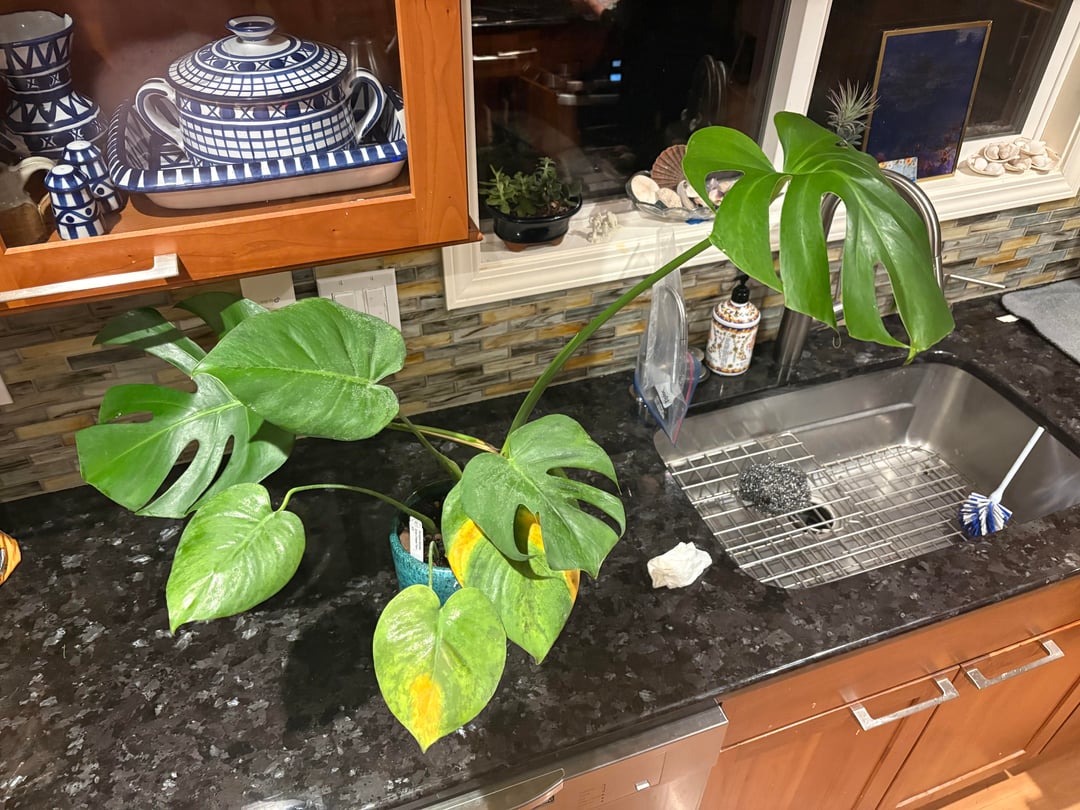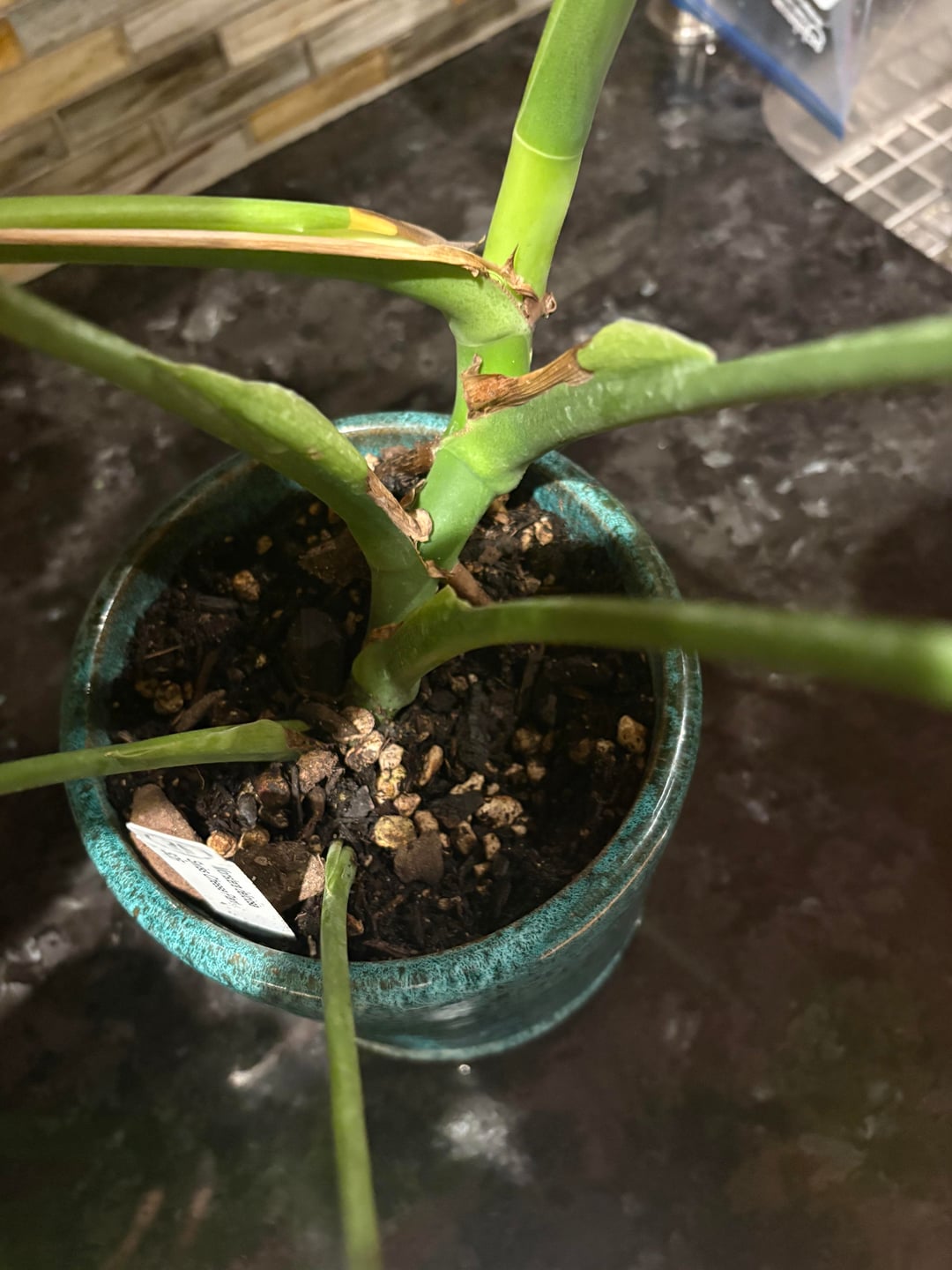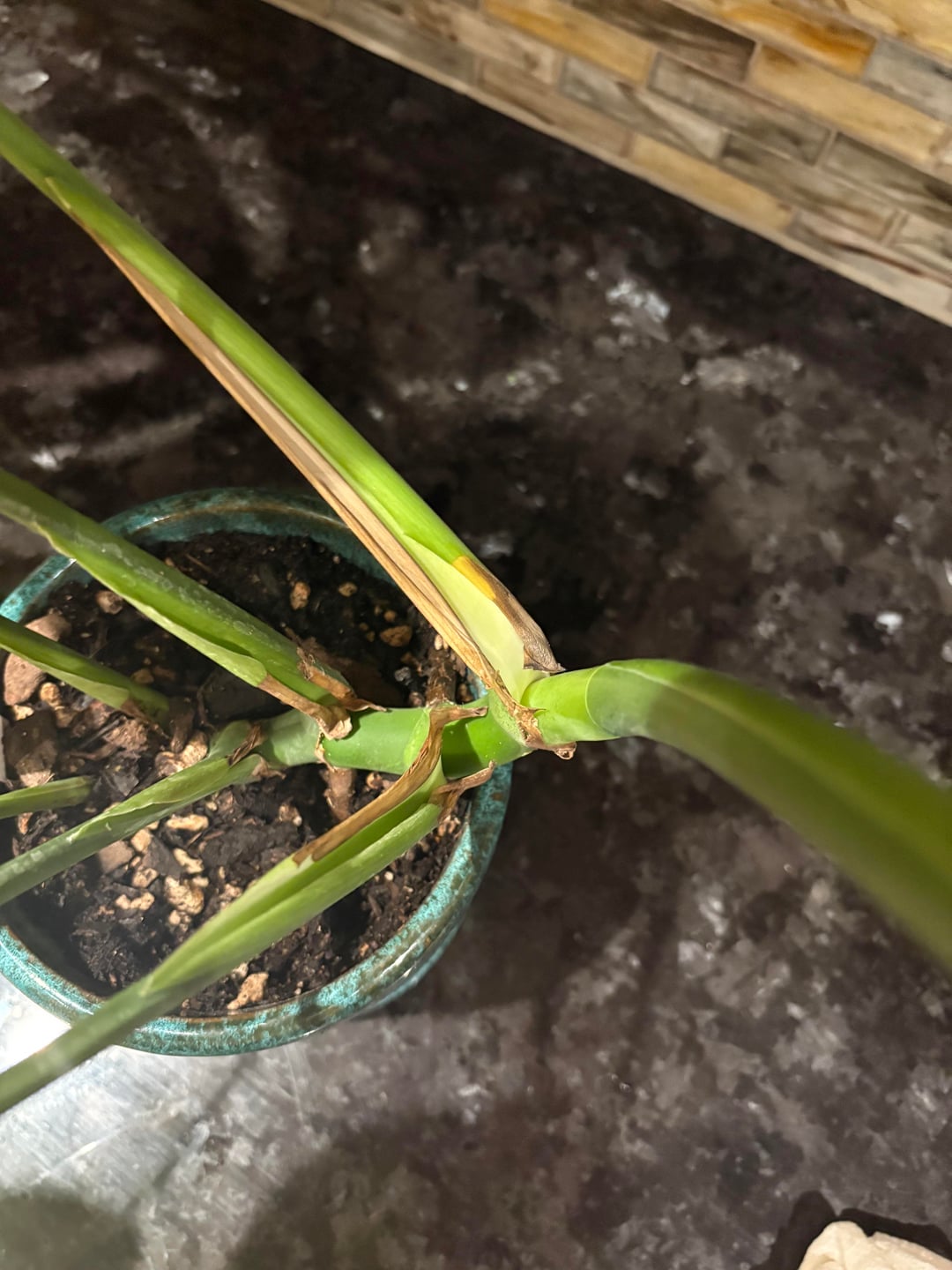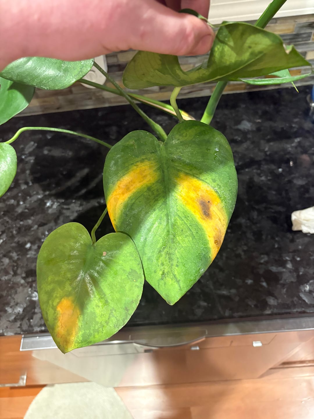 私のスイスチーズ工場で何が起こっているのか誰か教えてください。秋冬になってからは水やりを大幅に減らしました。そして、ここ数週間で、2枚の葉でこれが起こり始めていることに気づきました。黄色の斑点があり、内側は茶色です。週末にしっかりと水やりをしましたが、変化は見られませんでした。 私のお気に入りの植物のためのお手伝いができれば幸いです 💚