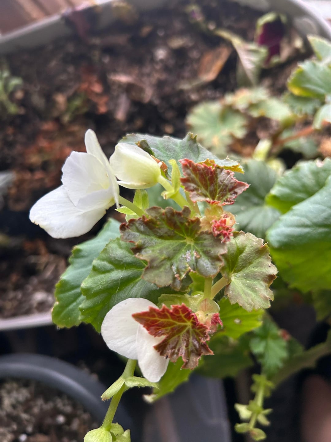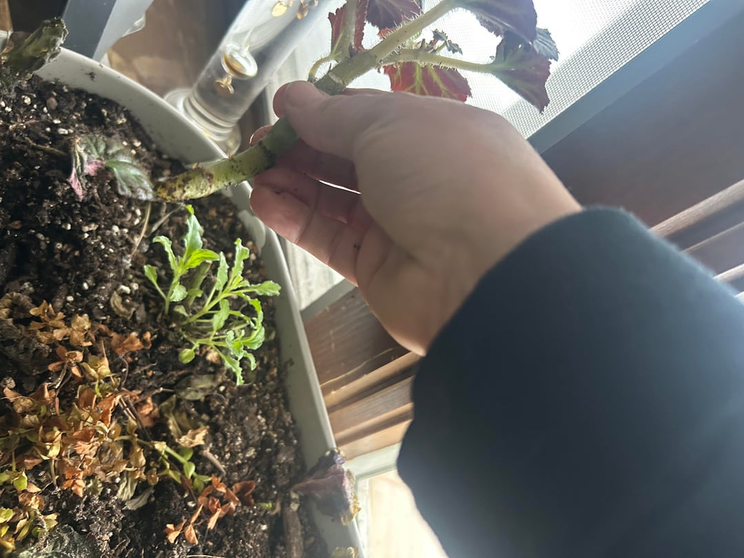 私たちは昨夜積もった5インチの雪をかき集めていましたが、私の犬は疎外感を感じていました。私たちの注意を引こうとして、彼女はこの夏に作った私のベゴニアの 1 つを割ってしまいました。生かしておきたかったのですが、これが最後の茎でした…。白いのは元気に育っており、まだ花が咲いています!!赤いものを救う最善の方法は何ですか?