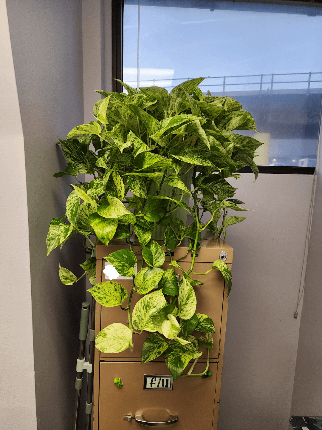 これはクイニーです。彼女は職場の私のファイルキャビネットに住んでいて、毎日新しい葉を広げています。彼女がその場所を引き継ぐことは間違いありません。