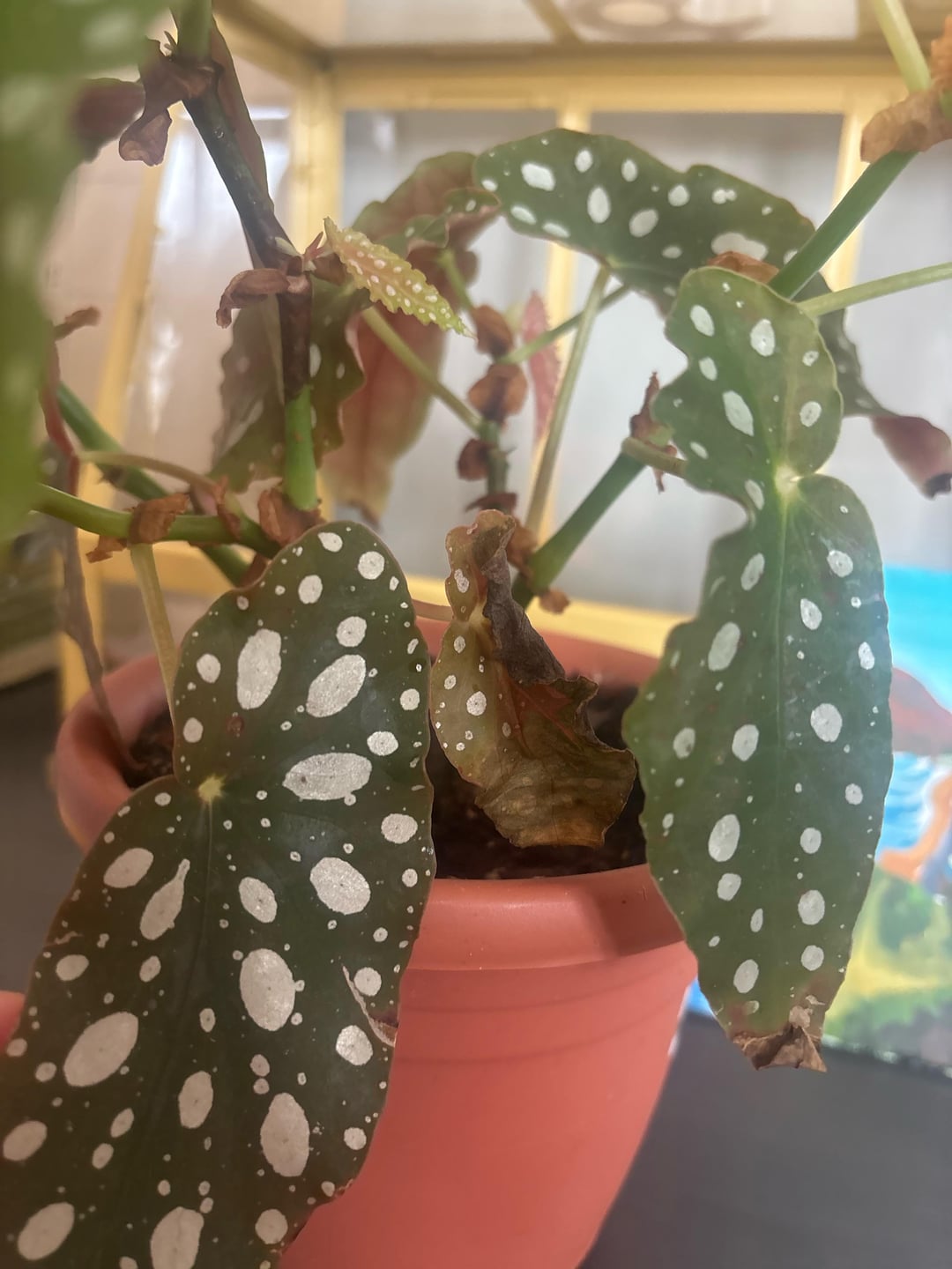 葉が茶色くなり始めていることに気づいたので、植物をローテーションし始めました。明るい間接光の下なので問題ないと思います。しかし、植物にこれらの斑点があるため、何が問題なのかわからないようで心配です。表土は湿った状態に保ちますが、濡れないようにしています。アパートは湿度が高いので、できる限り正しいことをしていると感じています。土は基本的な住宅用混合物で、水はけを良くするために蘭の樹皮を加えました。ヒントはありますか?