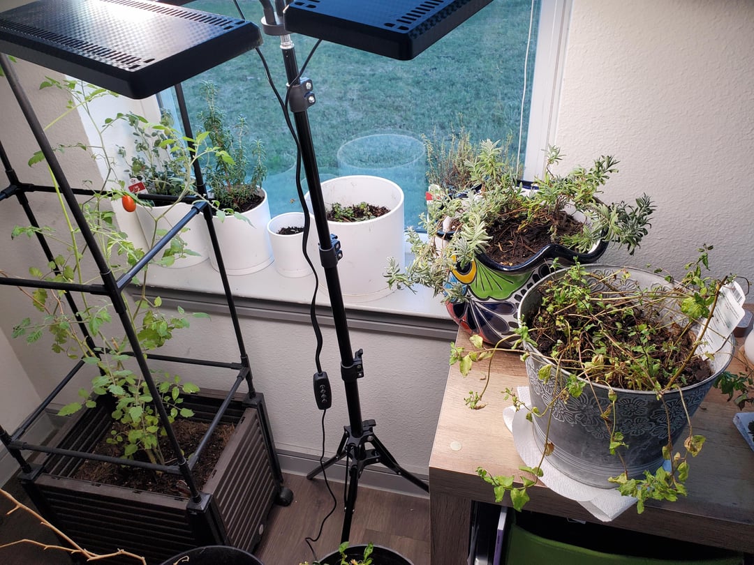 ここ 2 週間で私のトマトの苗の葉がこのように丸まり始めました。何が起こっているのか分かりません。外では天気が変わり続けるので、1ヶ月ほど屋内にいた(テキサスでは気温70度の日もあれば、次の日には30度を下回る日もある)。写真の通り、まだ新しい実をつけています。手足にも力が入らなくなり、よく転倒します。室内にもライトを用意して、1つをその上に置き、残りの2つをハーブの上に置きました。