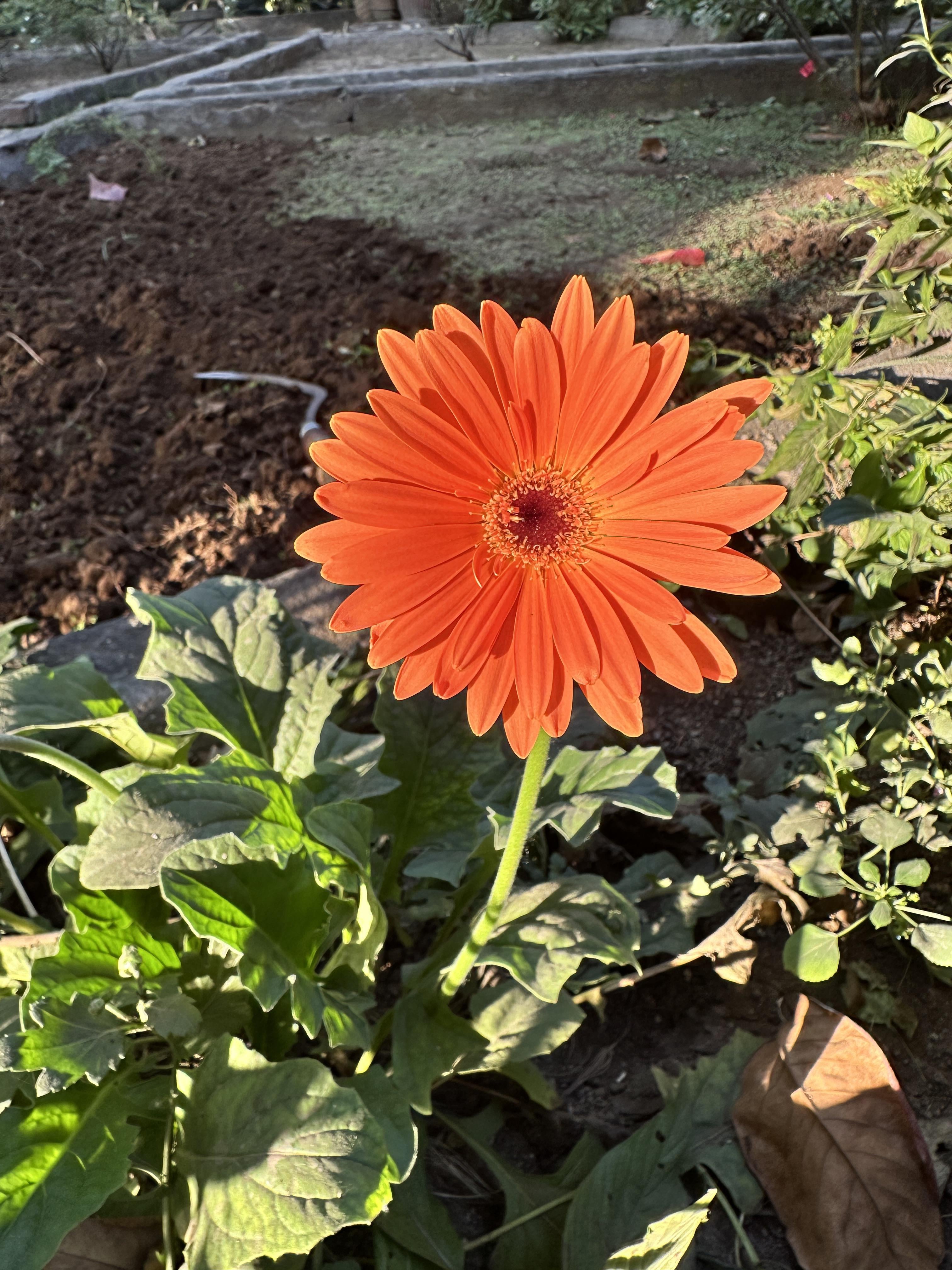 緑と成長を続けるマスタード、チリ、スカッシュの庭