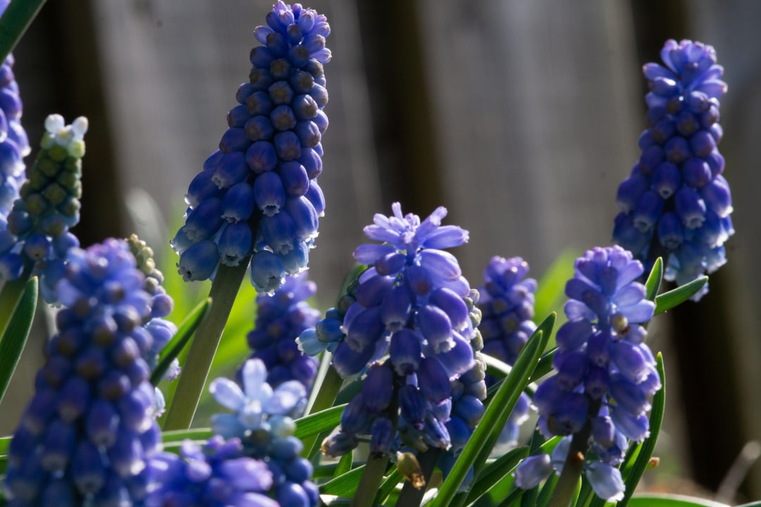 紫のアネモネ、青いムスカリ、シラー・ミシュチェンコアナ、チューリップ 鑑賞すべき美しい種 💖