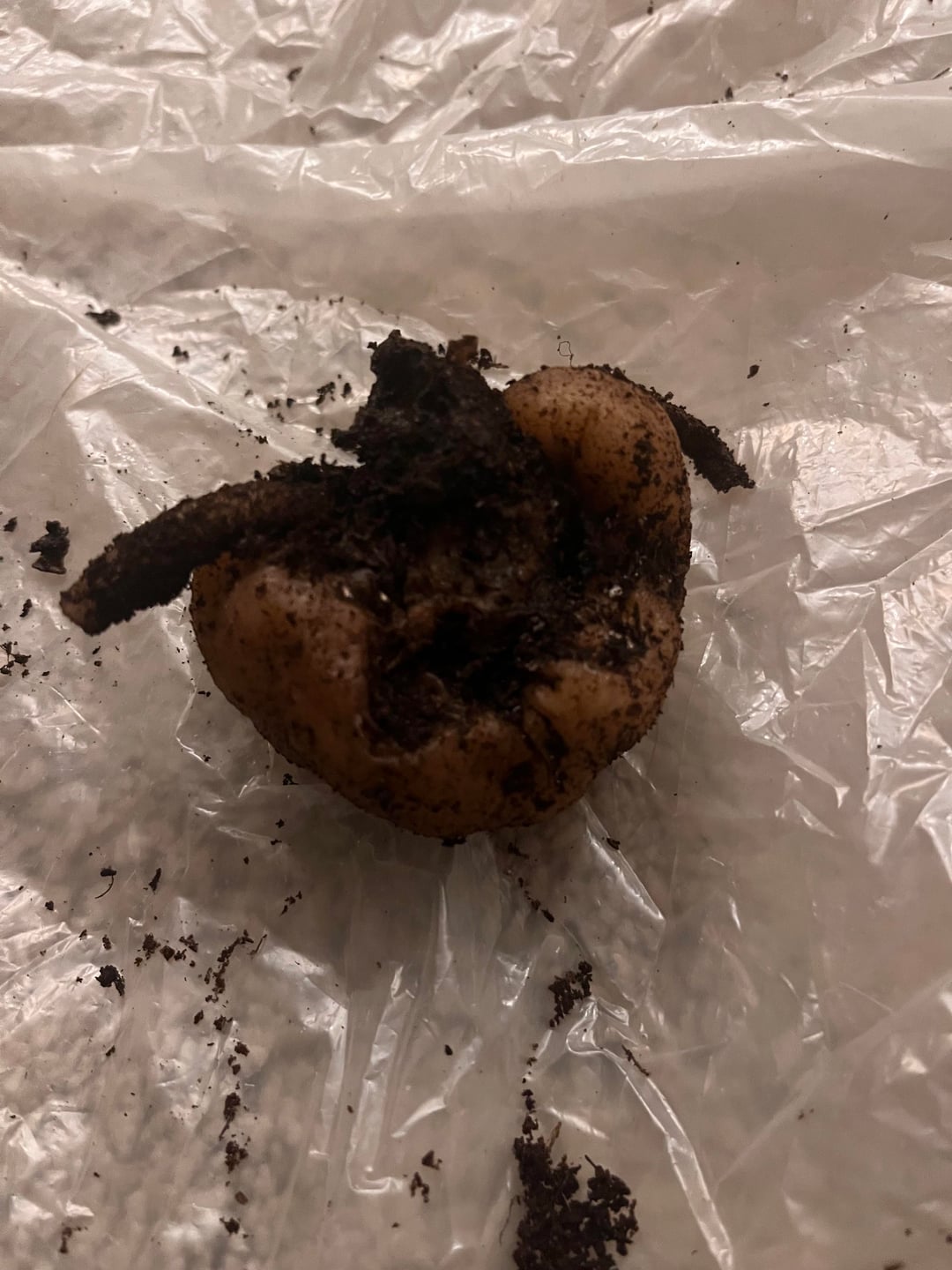植え替えのために取り出したのですが、根や地下茎の多くが腐ってしまいました。これが私に残ったものです。根を乾燥させるために一晩放置し、ここで提案されている他の投稿でパーライトを購入する時間を与えようと思いました。