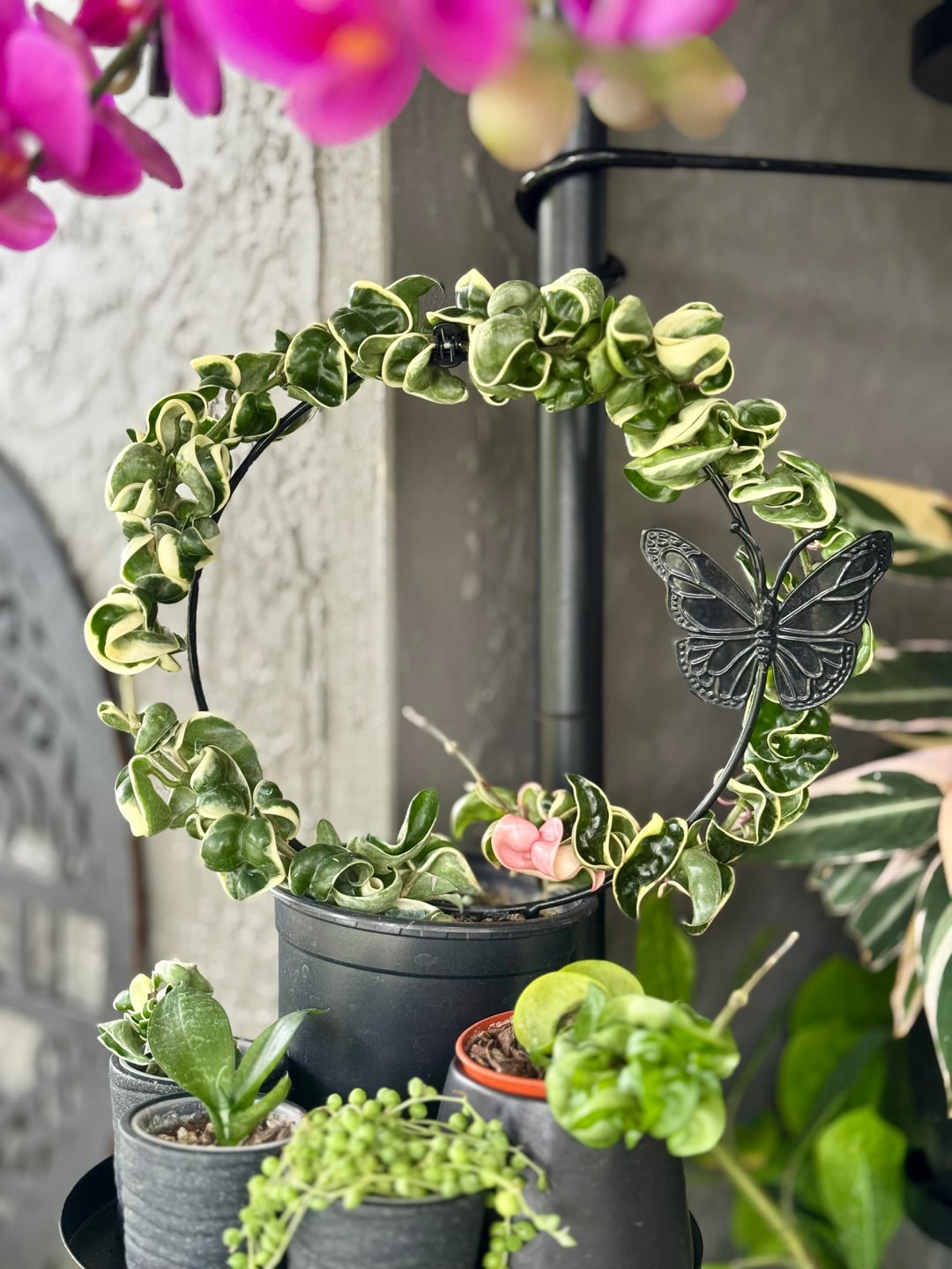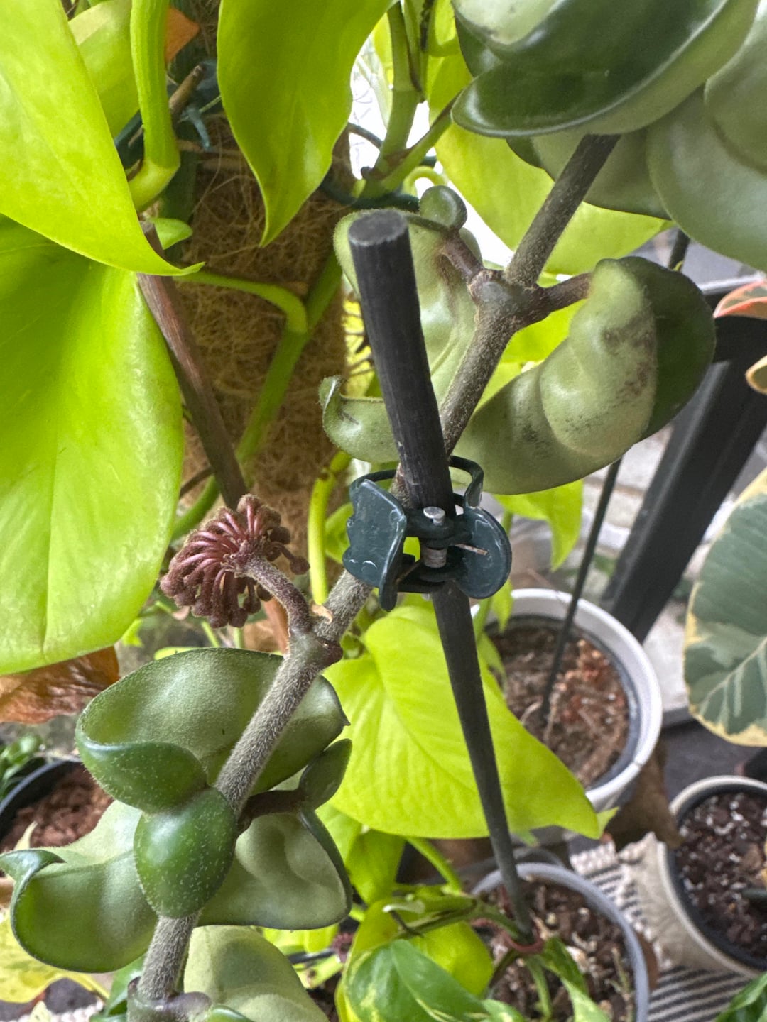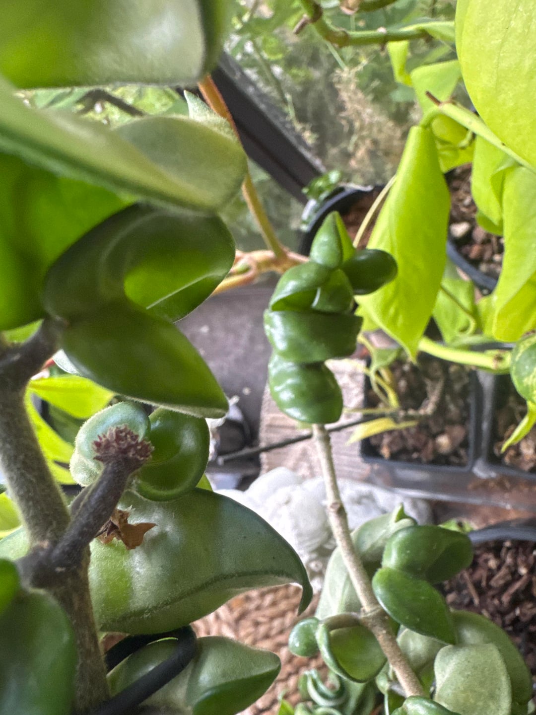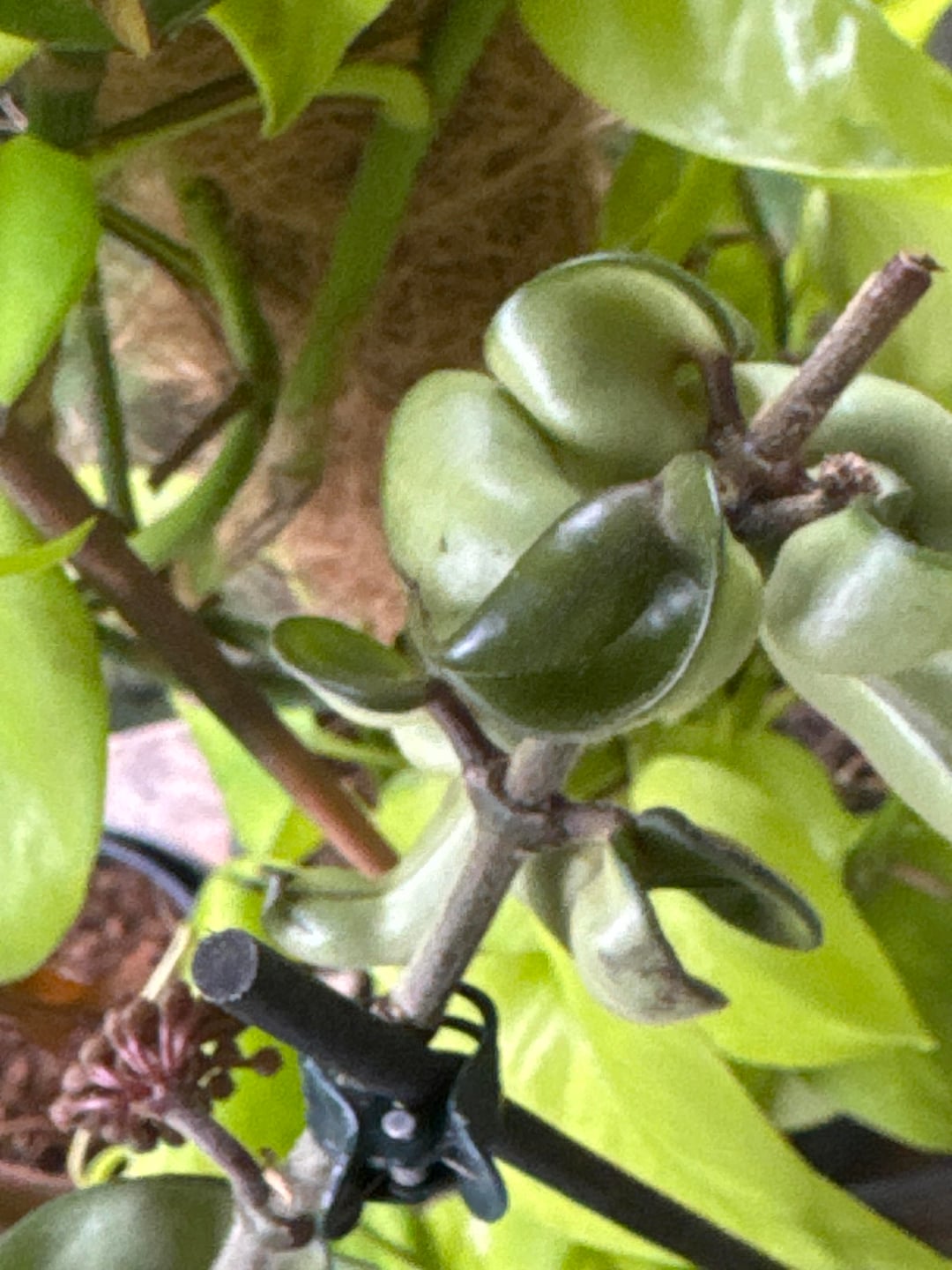 最近家に帰ってきて、ホヤ・カルノーサ・コンパクタが生き残っているだけでなく、新しい芽を出し、花柄が再び活性化し、小さなピンク色の葉さえも付けているのを見て、私は完全に足を止めました。