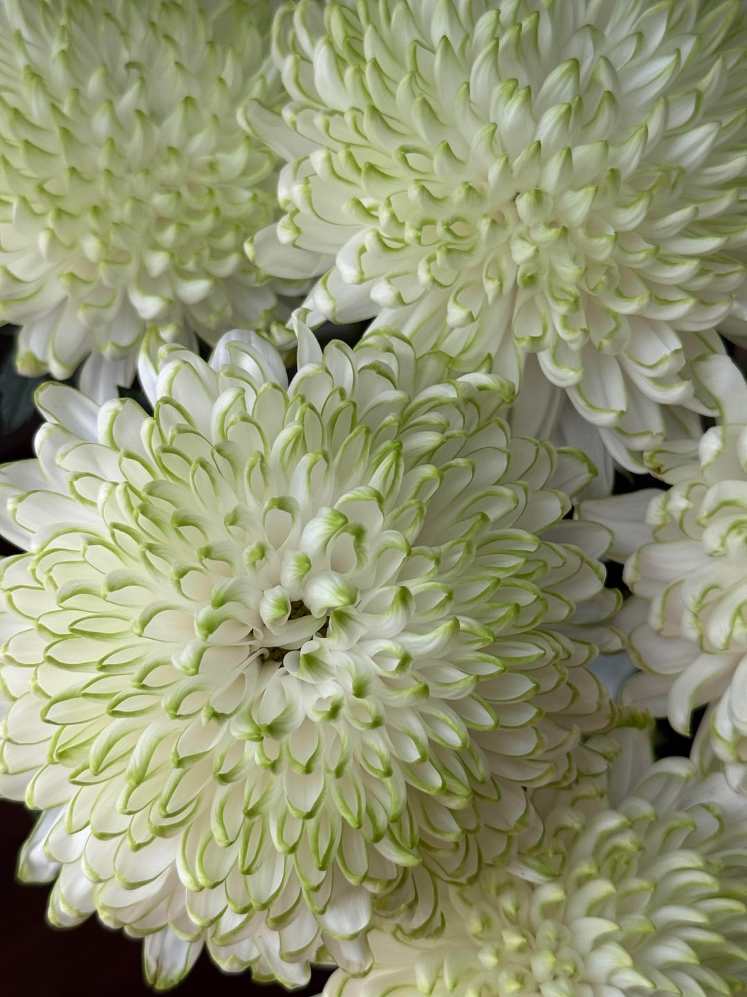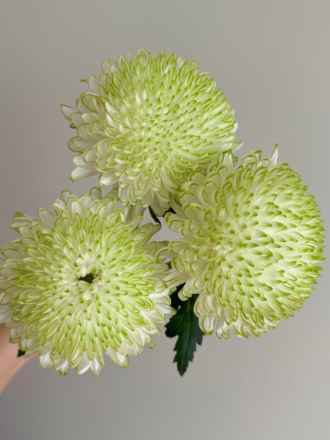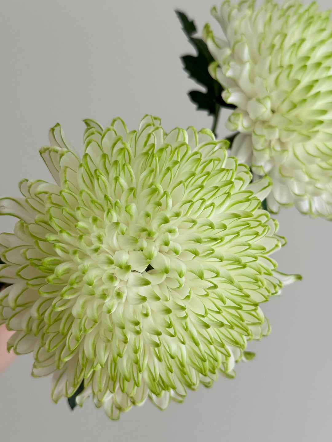 「グリーン フレーム」菊: ミントの香りを持つ白い花びら