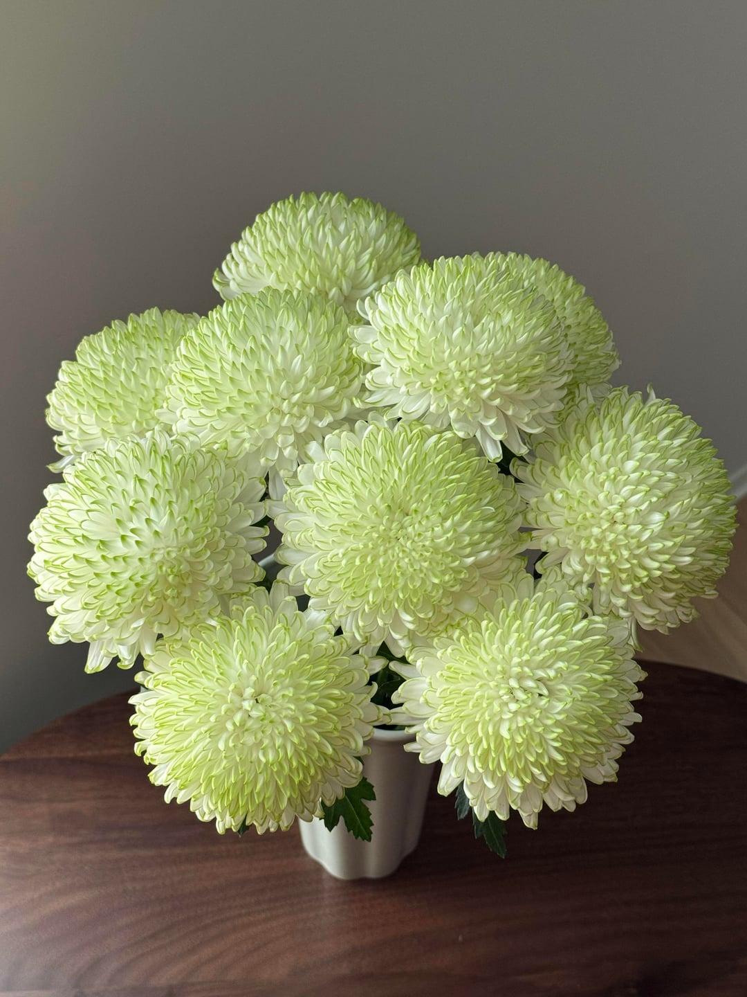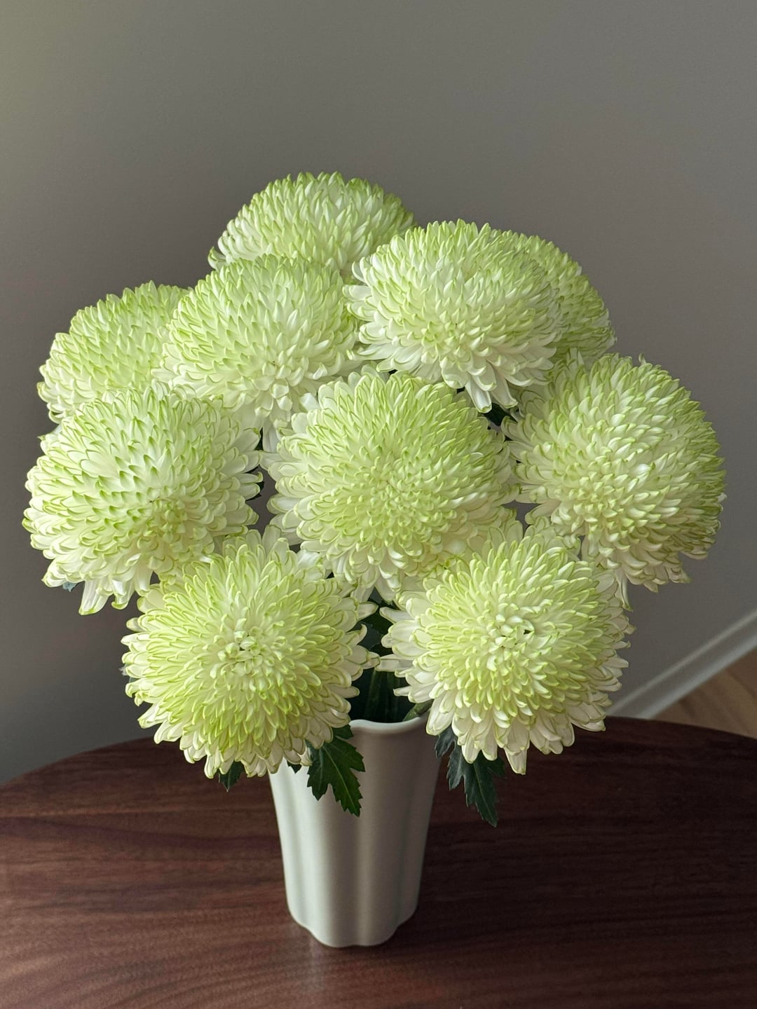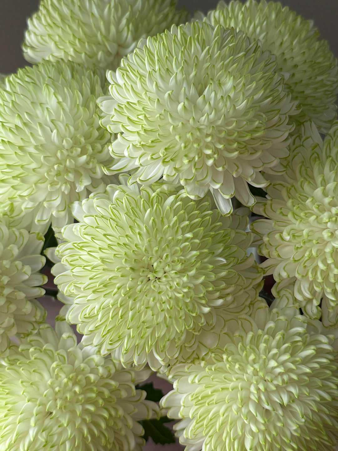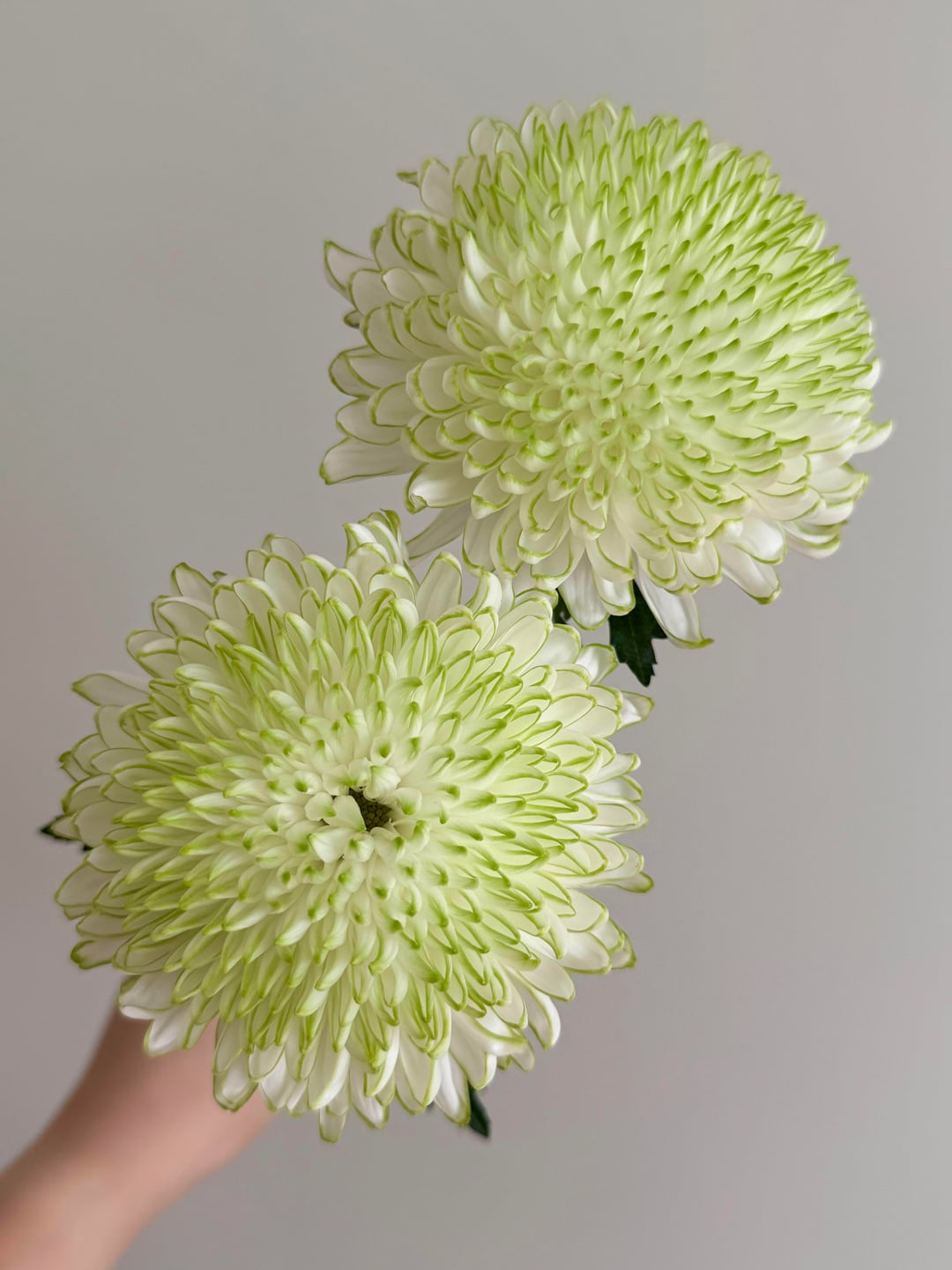 「グリーン フレーム」菊: ミントの香りを持つ白い花びら