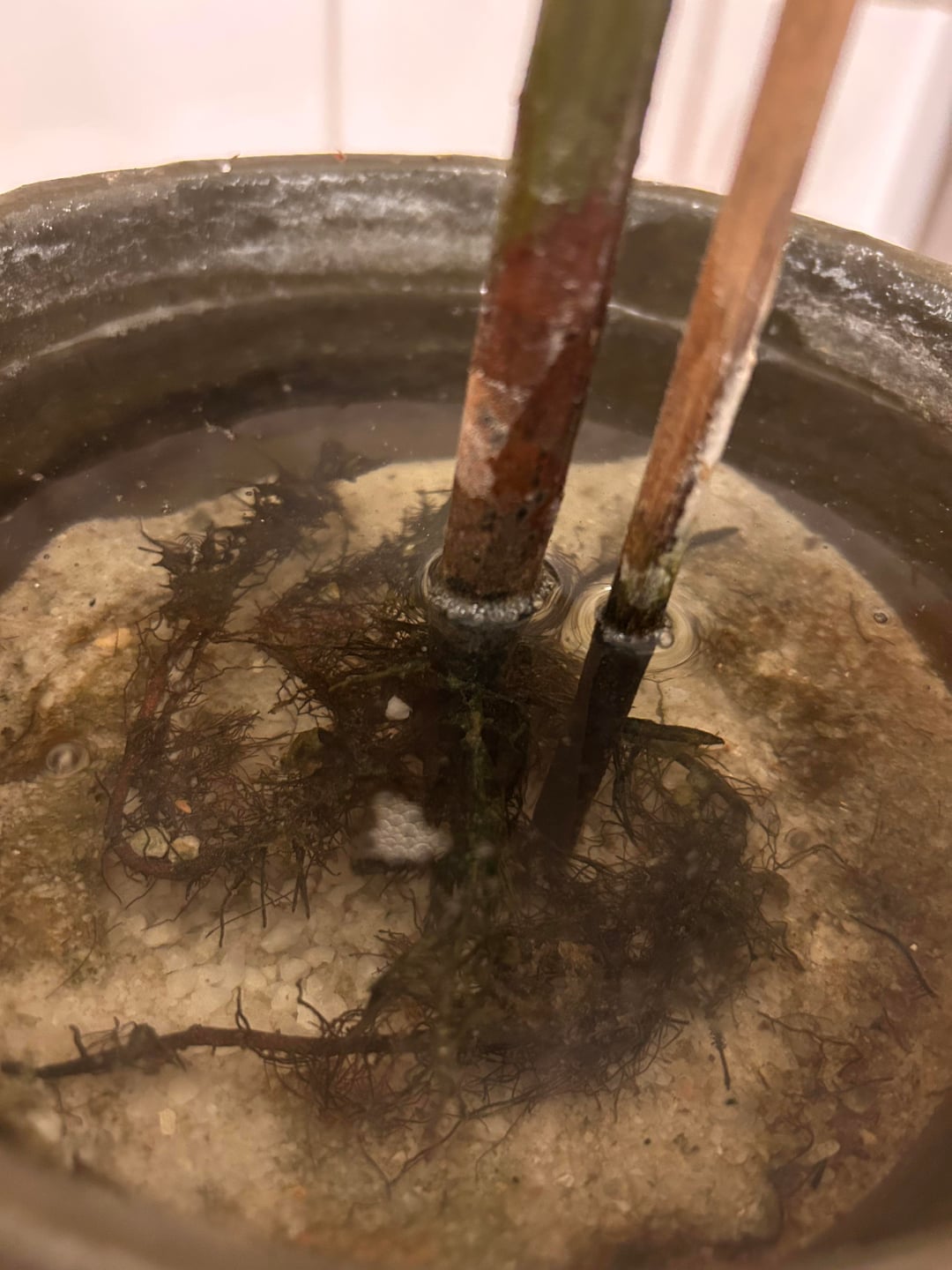 私はこのマングローブを、水と砂と砂利の 50/50 混合の環境で 1 年以上育ててきました。数日間外出していたのですが、出発前に水を補充するのを忘れたため、水が蒸発してしまいました。帰ってきたら葉っぱも元気そうでした。もう一度鉢をヤスリで整えたら、葉っぱがすべて下に傾いているように見えました。保存するにはどうすればよいですか? (茶色の部分は何ヶ月も前から存在しており、何も新しいものではありません)