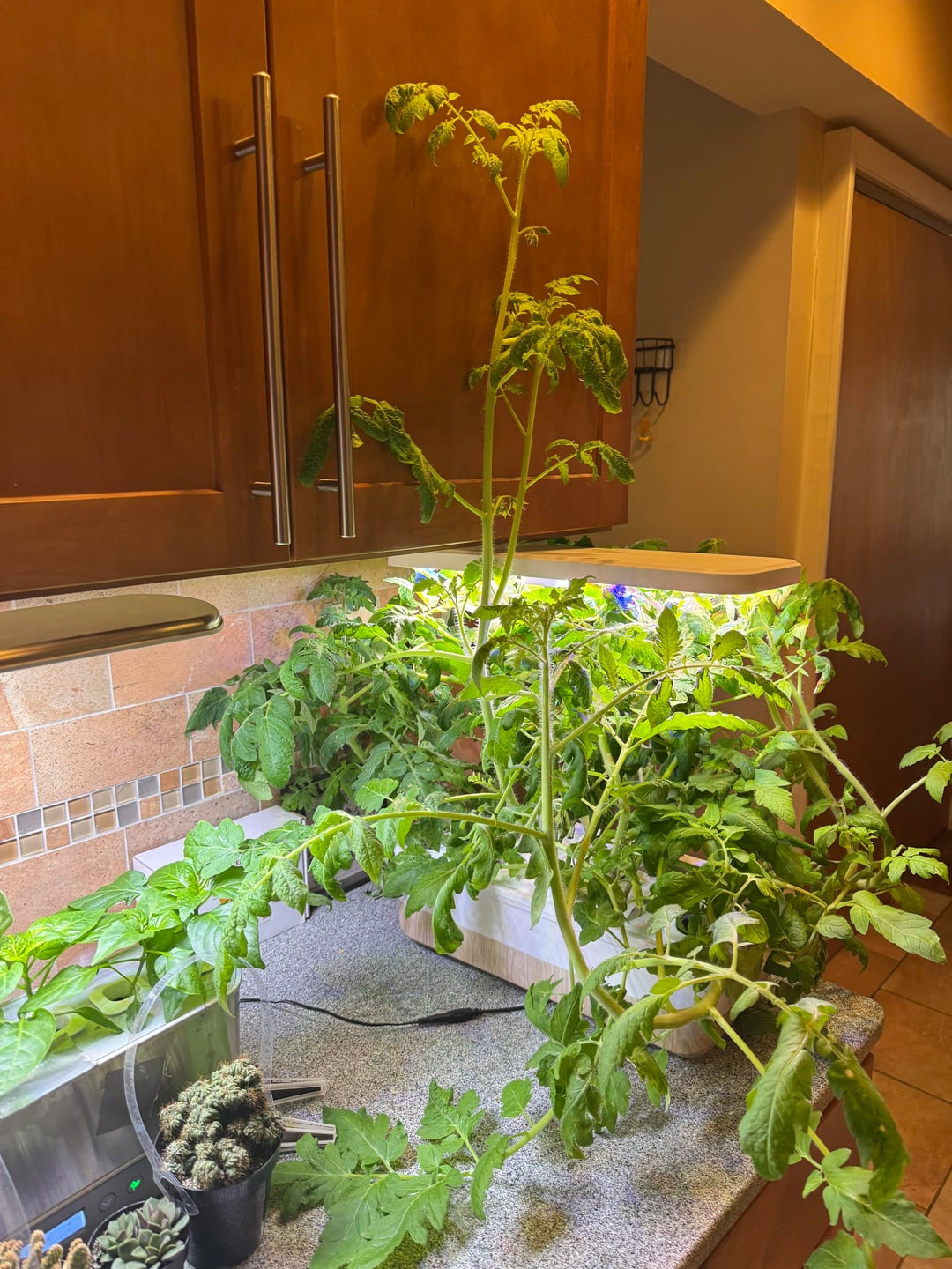 夫は植物用の照明がないため鉢に移したくありませんが、彼らが世界征服を企んでいるのではないかと心配しています。少なくとも、キッチンの支配権は…
