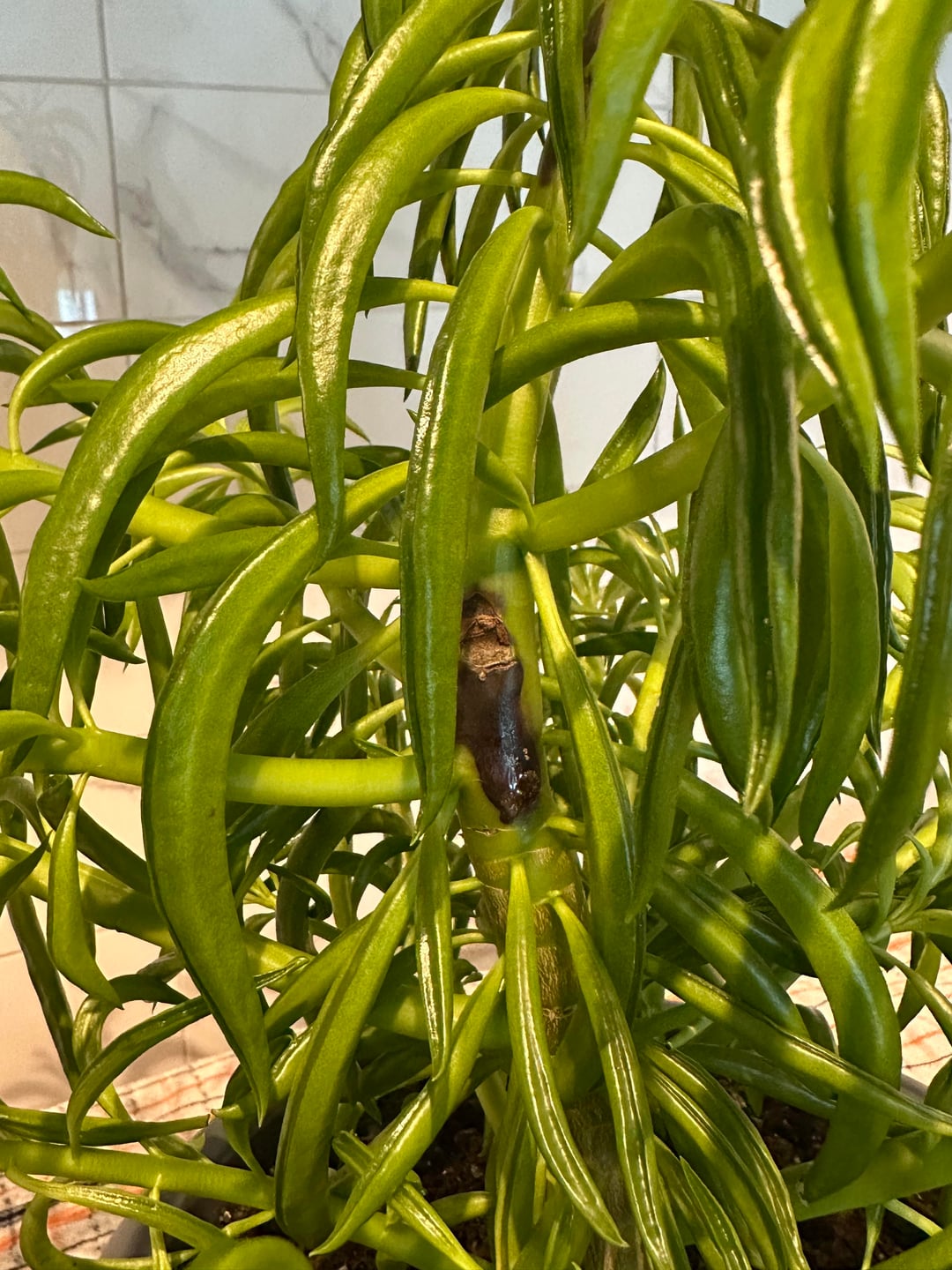 約1年前に高さ4インチで購入しました。一度植え替えました。順調に育っていますが、突然茎に問題が発生しました。何か助けがあれば幸いです。🙂