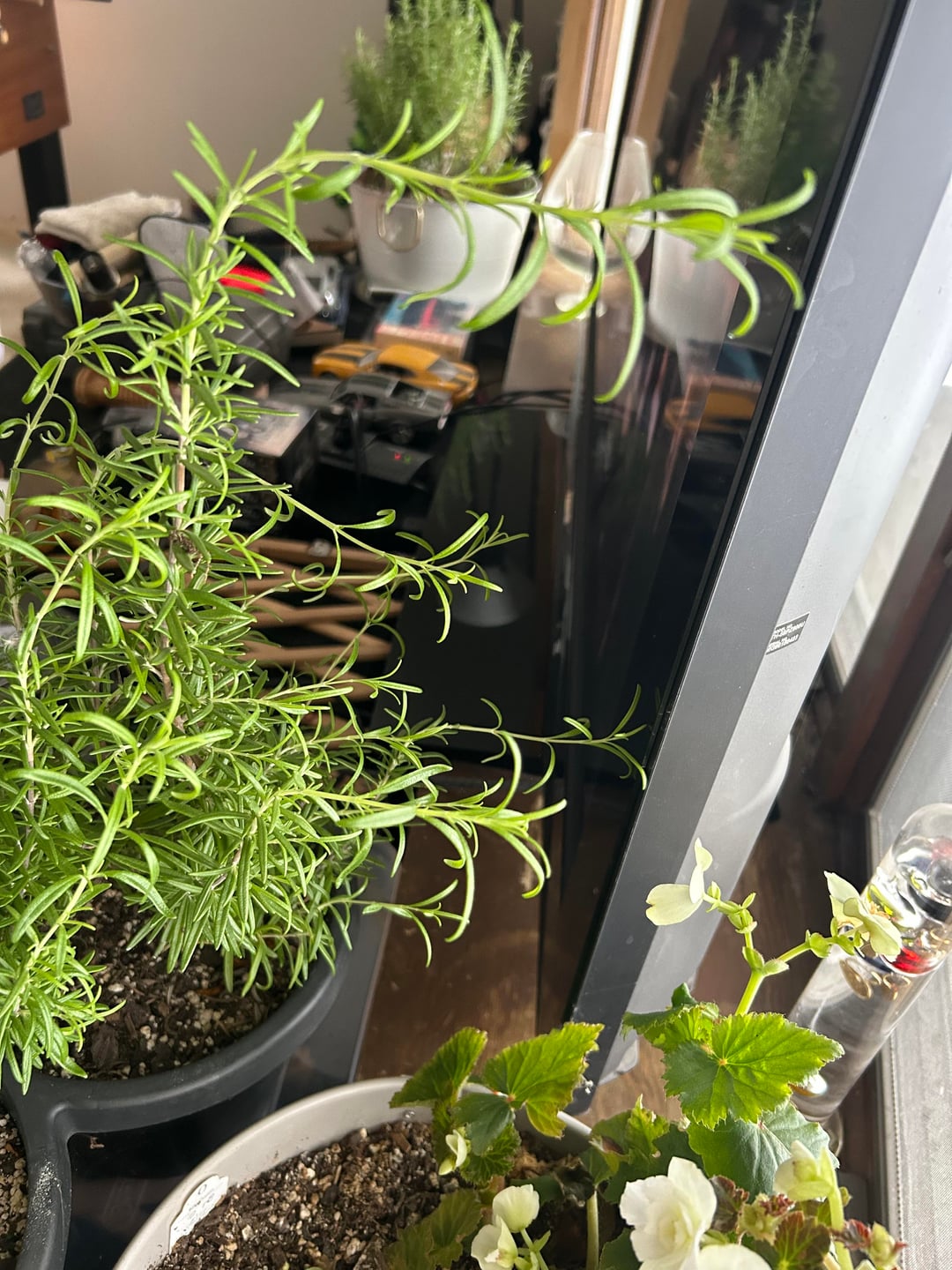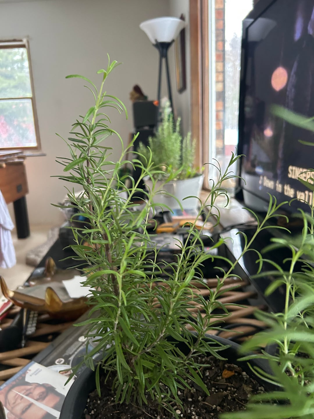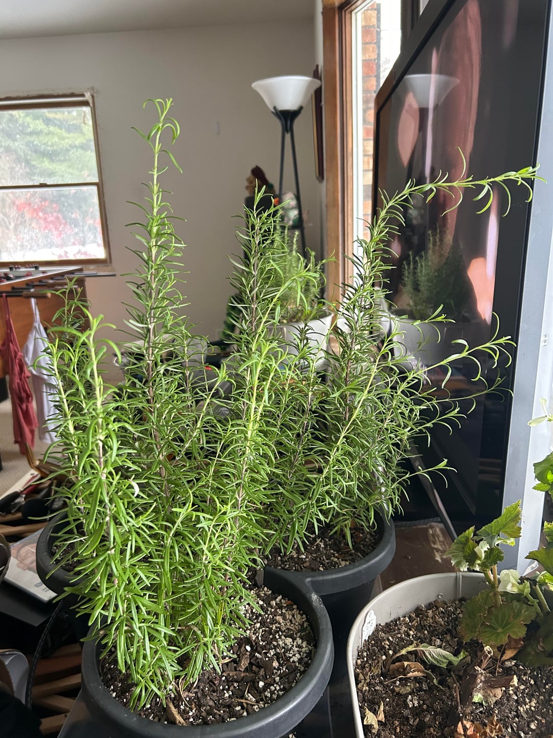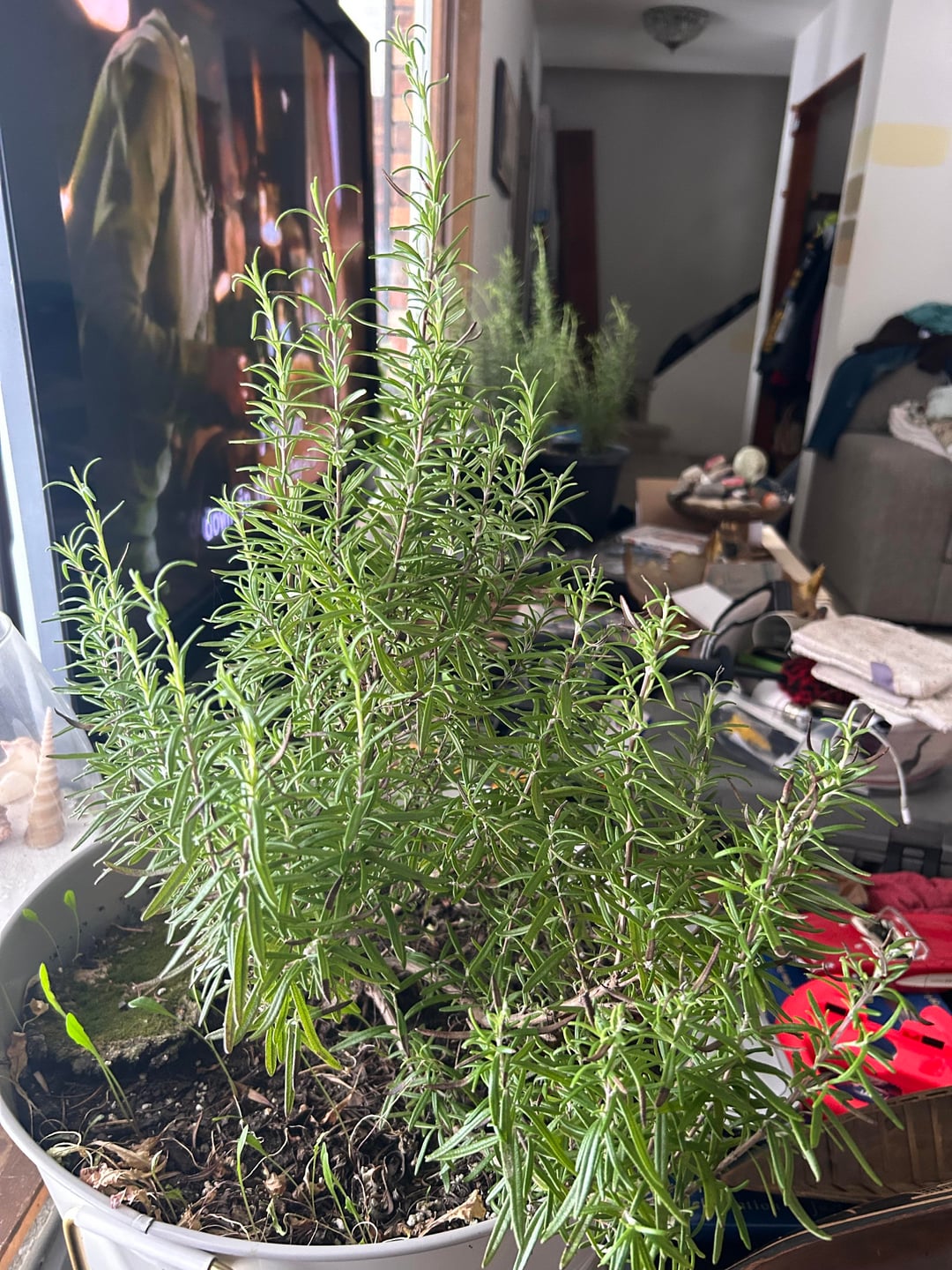 冬の初めに、2つの鉢植えのローズマリーを室内に持ち込みました。彼らがここに来て数週間が経ち、私は熱心に観察しています。それらは明らかに 2 つの非常に異なる品種であり、お互いにまったく異なる成長をしています。この成長パターンは彼らに害を及ぼすのでしょうか、それともそのままにして春にトリミングするだけでしょうか?栽培用ライトを置くスペースも資金もないので、それは選択肢ではありません。私が1年半飼っているよりコンパクトなもので、昨年よりもはるかに大きな鉢に入っています。冬の間ずっと生き続けるためのアドバイスはありますか?