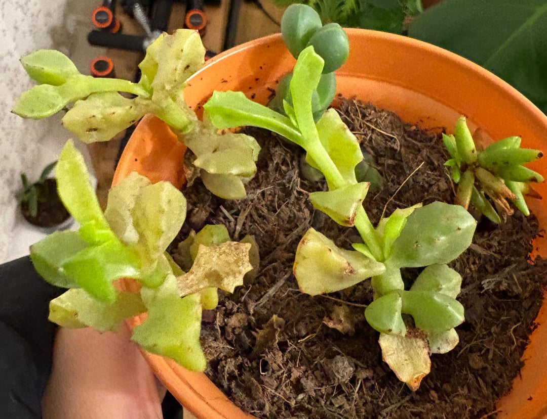 いくつかの葉はフロッピー(どろどろではない)または完全に乾燥していて、他の葉は黄色っぽい:(