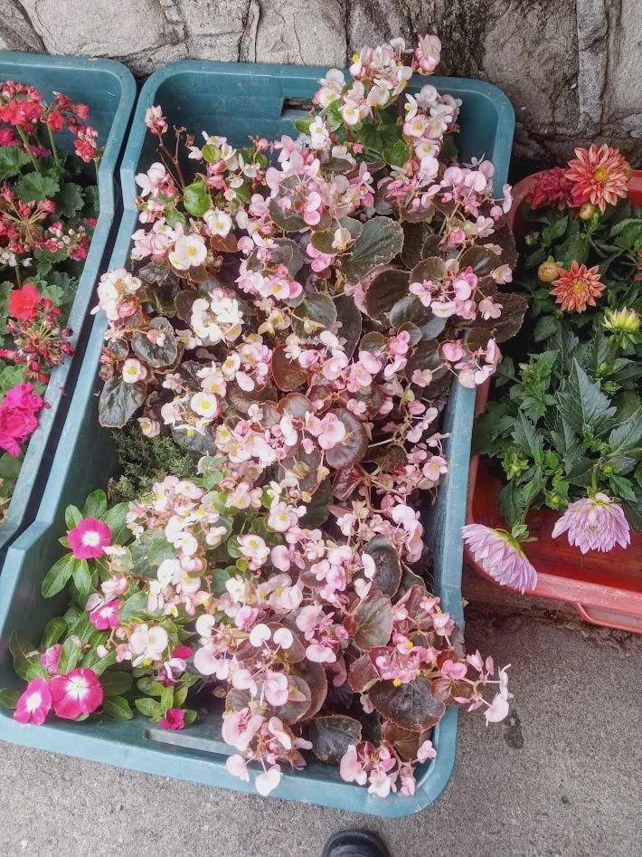 美しい花で珍重される植物、ベゴニアの美しい標本。主に個人の庭で観賞植物として利用されます。メキシコ、プエブラ市の地元市場で撮影された写真。 Hive で公開する: https://ecency.com/hive-154065/@marjuanm/begonias