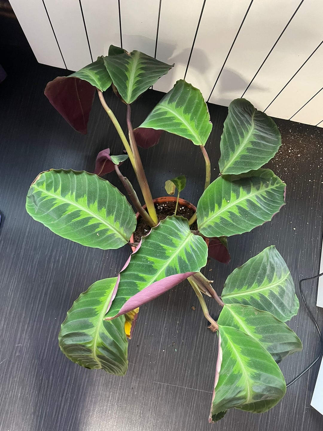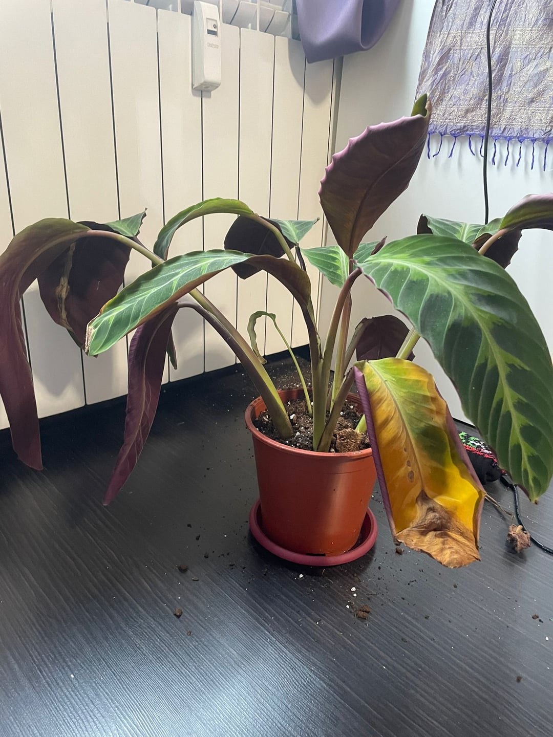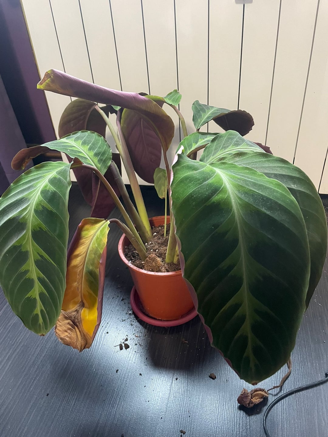 カラテアは数日ごとにぐったりして、ほとんど死んでいるように見えるので、少し水をやりましたが、ご覧のとおり、葉が黄色くなり、乾燥してしまいます。