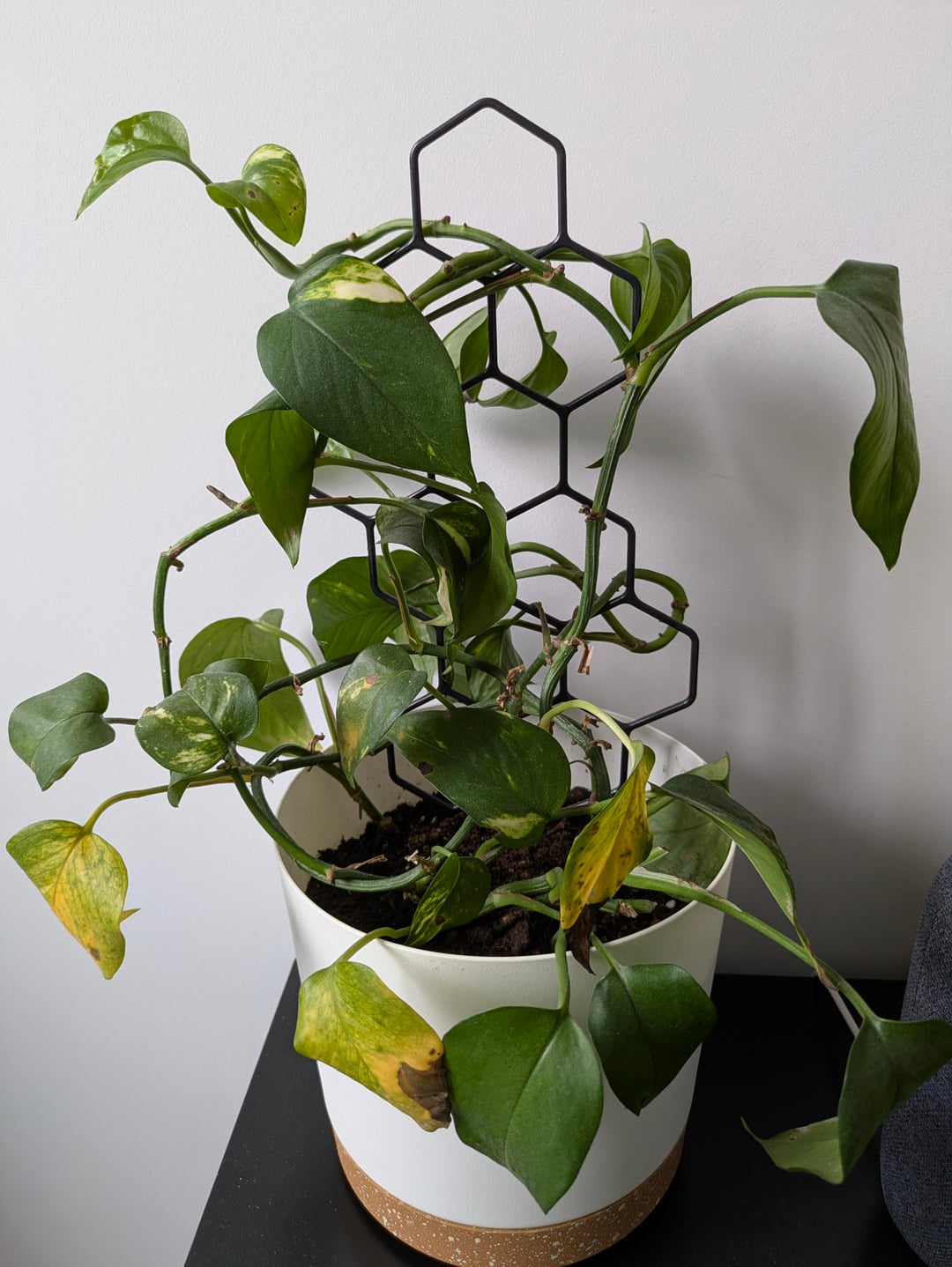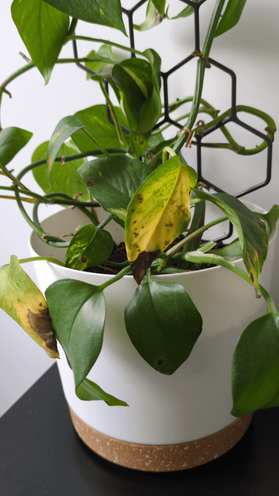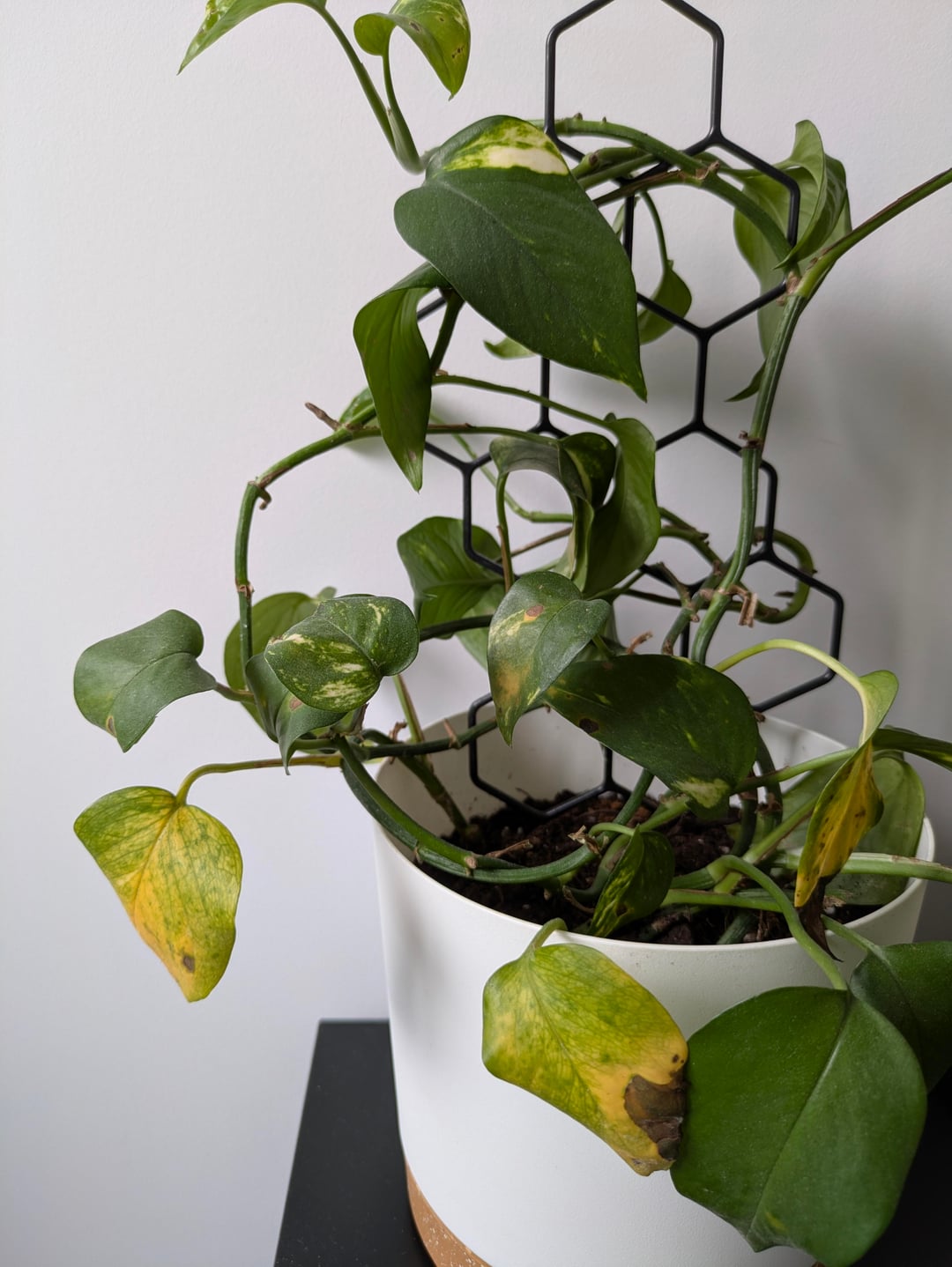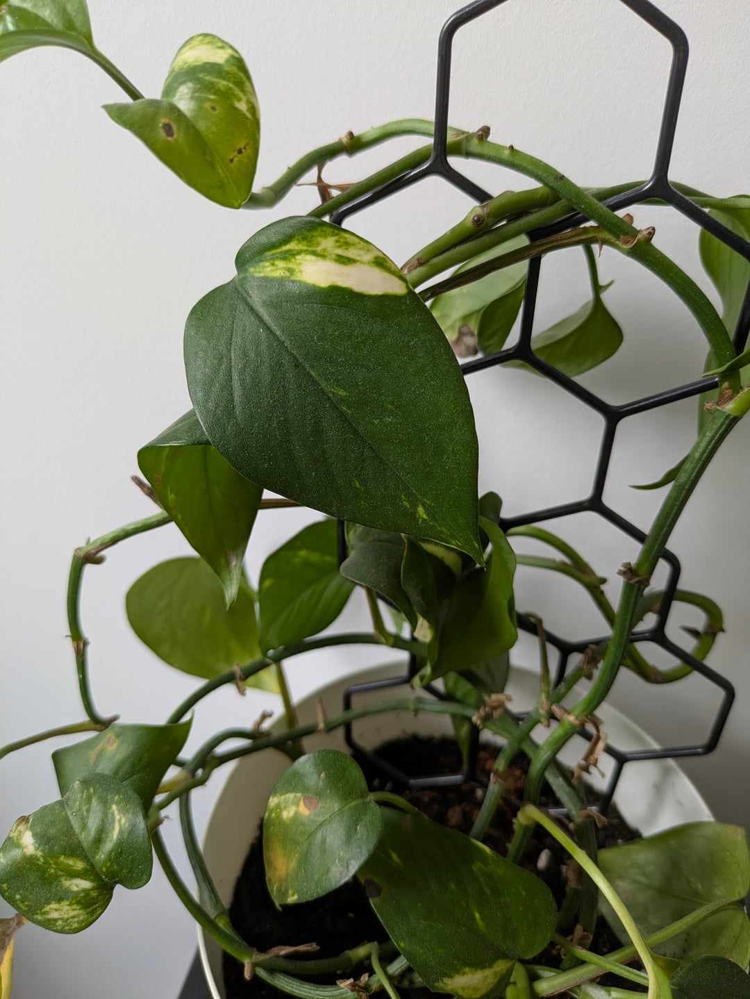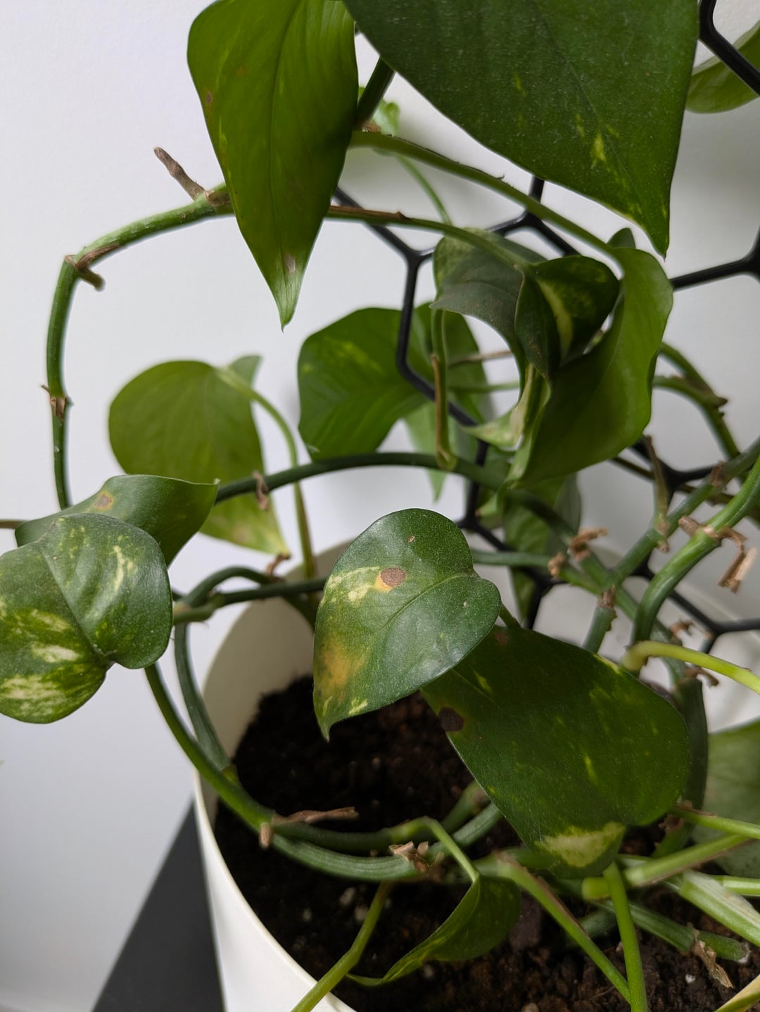 こんにちは、みんな!私はポトスに絶望しています。ほぼ2週間ごとに水をあげています。彼女は窓際にいますが、直射日光は当たりません。最近このようなシミができたので、影響を受けた葉を切りましたが、また出てきました。植物屋に聞いたところ、カビの問題ではないようです。 他に何かアイデアはありますか? ありがとう!