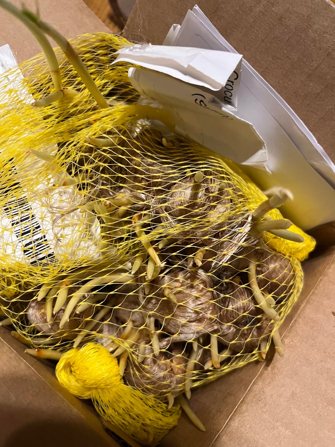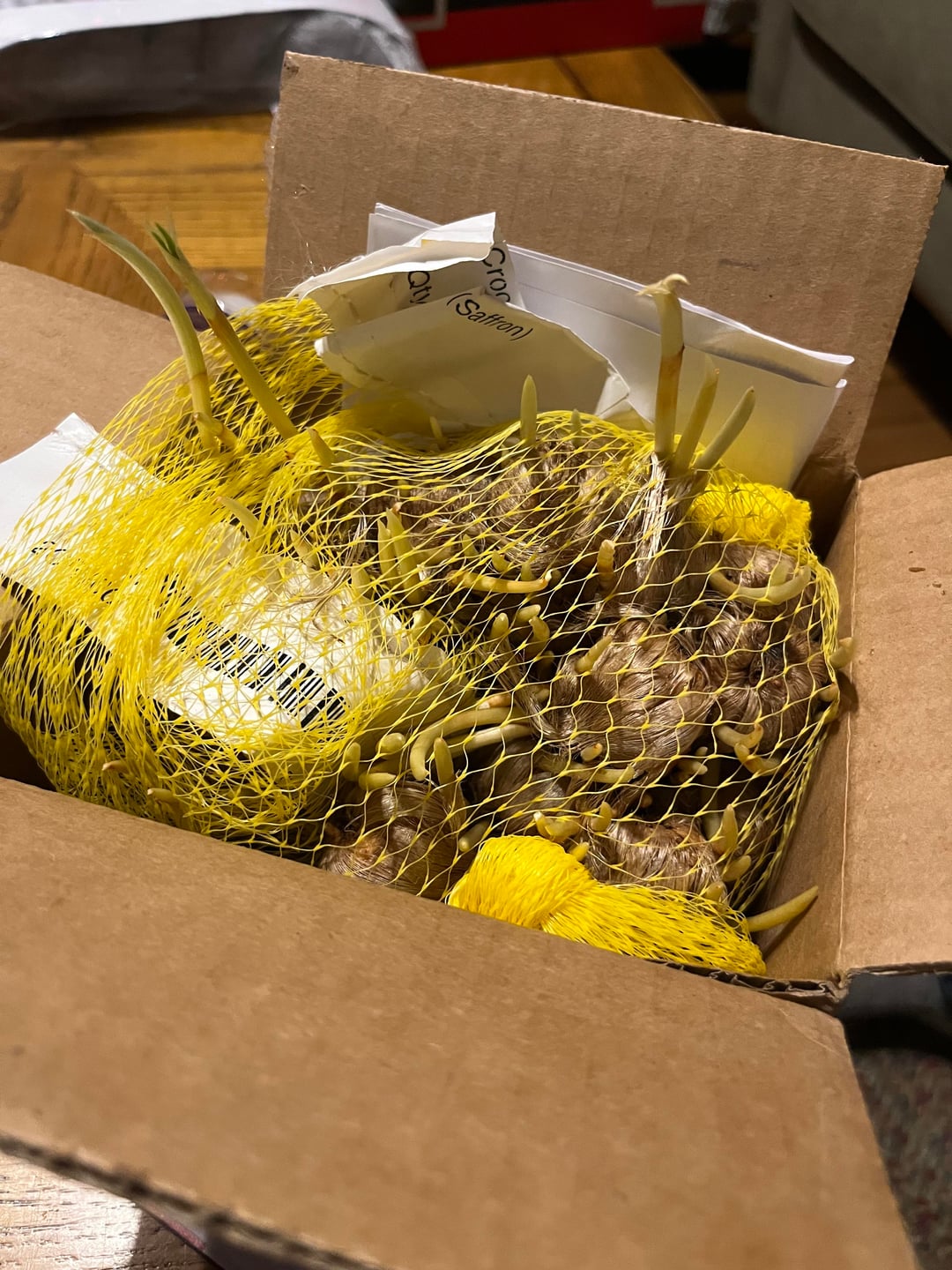 そこで私は50個のクロッカス・サティバスを購入し、この秋に郵便で受け取りました。夫が荷物を「取りに行く」ために移動させたので、私はすぐに荷物のことを忘れていました。先ほど見つけたのですが、箱の中で芽が出始めていました。私は何をしますか?!鉢に植えて、この冬は室内で育ててみませんか?栄養を得るのに十分な太陽が当たらない可能性があります。このまま冷蔵庫に入れてますか?私は7aです。