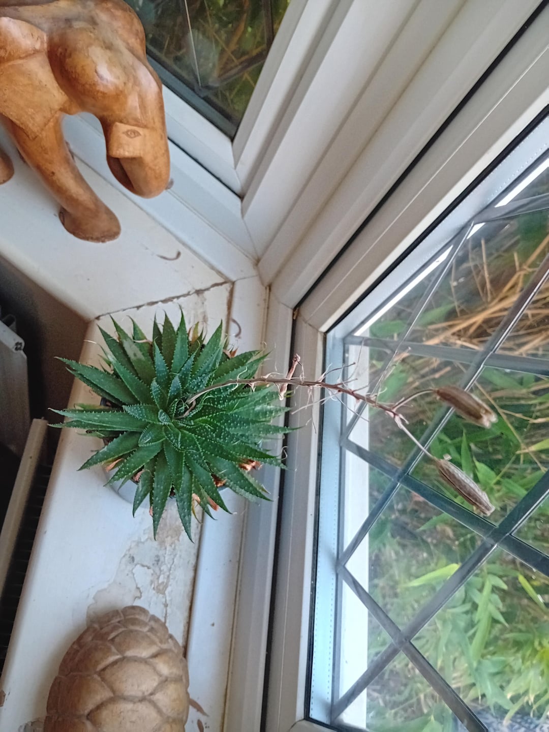 これが何の多肉植物なのか、そして真ん中から何が生えているのかわかりませんか?