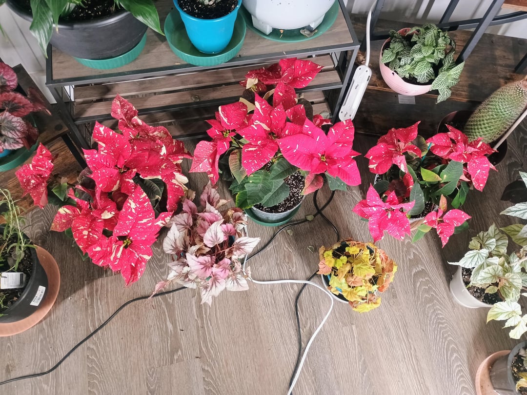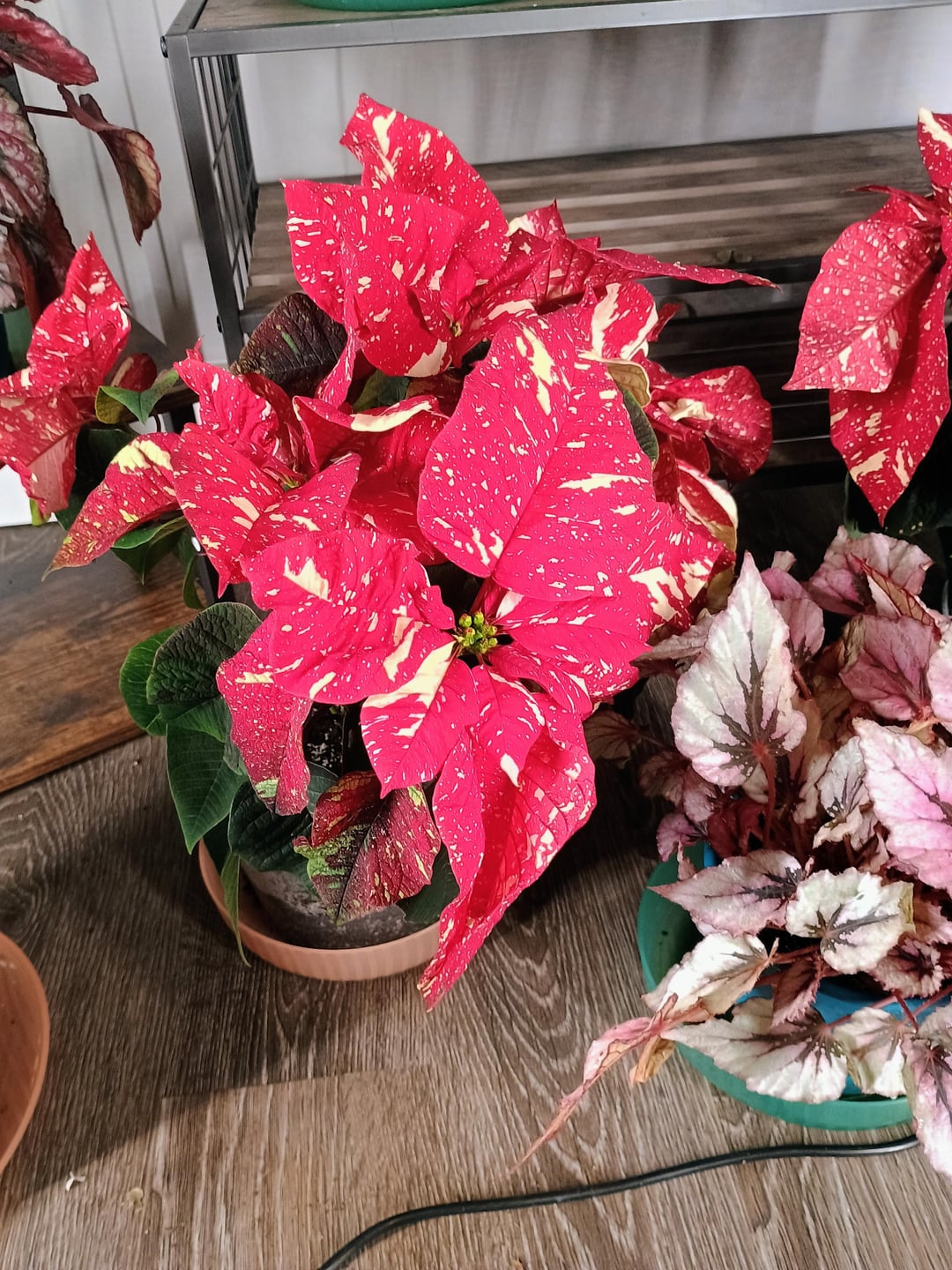 職場にポインセッタがあったのですが、その色に一目惚れしました。ウォルマートに行ったら、なんと15ドルで売ってました。根の周りにメッシュの袋があり、ポットの中に3つあった場合に備えて植え替えました…ウーッウーッ
