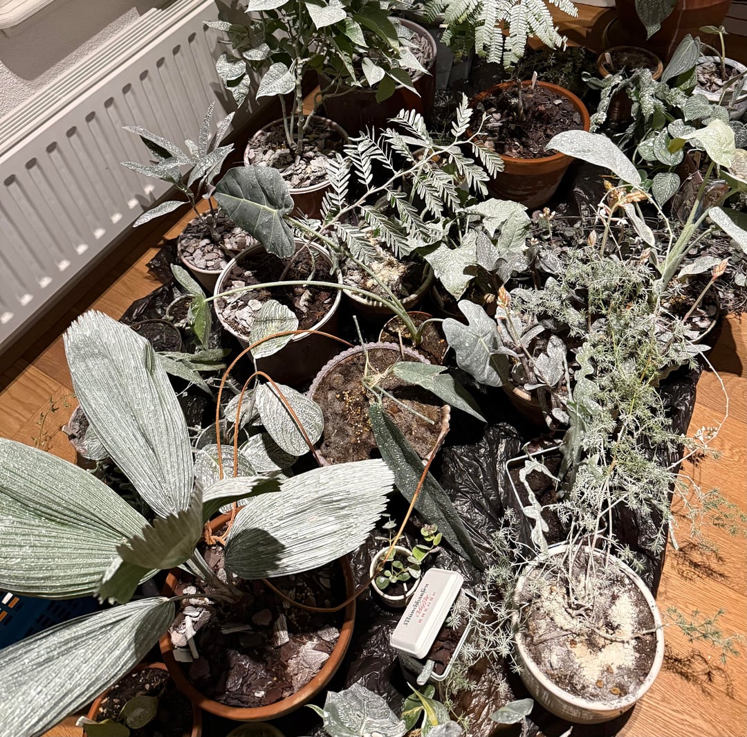 私はアザミウマと闘っていて、そのことで完全に打ちのめされています。数年前、私は何か月もの間、毎日葉っぱを一枚一枚拭くことで、ゴムの木の害虫と戦うことができました。他の葉の種類や、現在の私のコレクションにある植物の数では、それは実現できません。光合成が阻害されるのが怖いのと、トビムシと有益なダニの土壌生態系を育ててきたので、物理的治療の道には本当に行きたくなかったのですが、捕食性ダニ、線虫、カルナを購入して完全な蔓延を治療する余裕はありません。私はこのアプローチを試しており、湿気に敏感な種が破壊されないことと、後で土壌生態系を再構築できることを心配しながら祈っています。