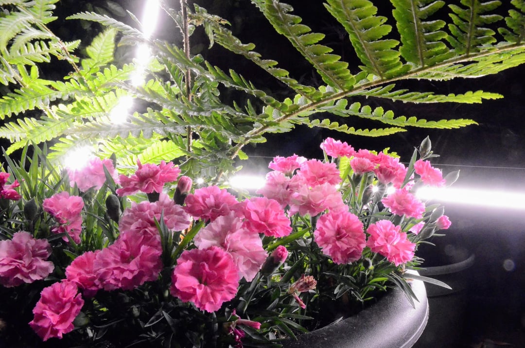- カーネーションとシダが、暖かい夏の夜にライトペインティングを楽しんでいます。