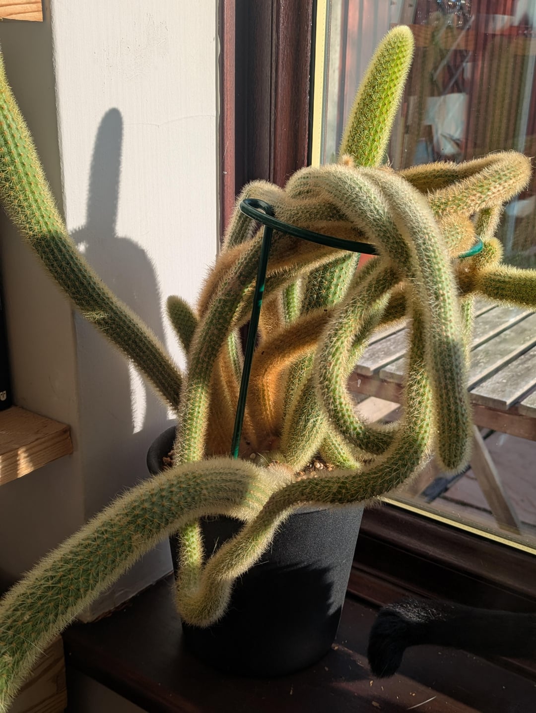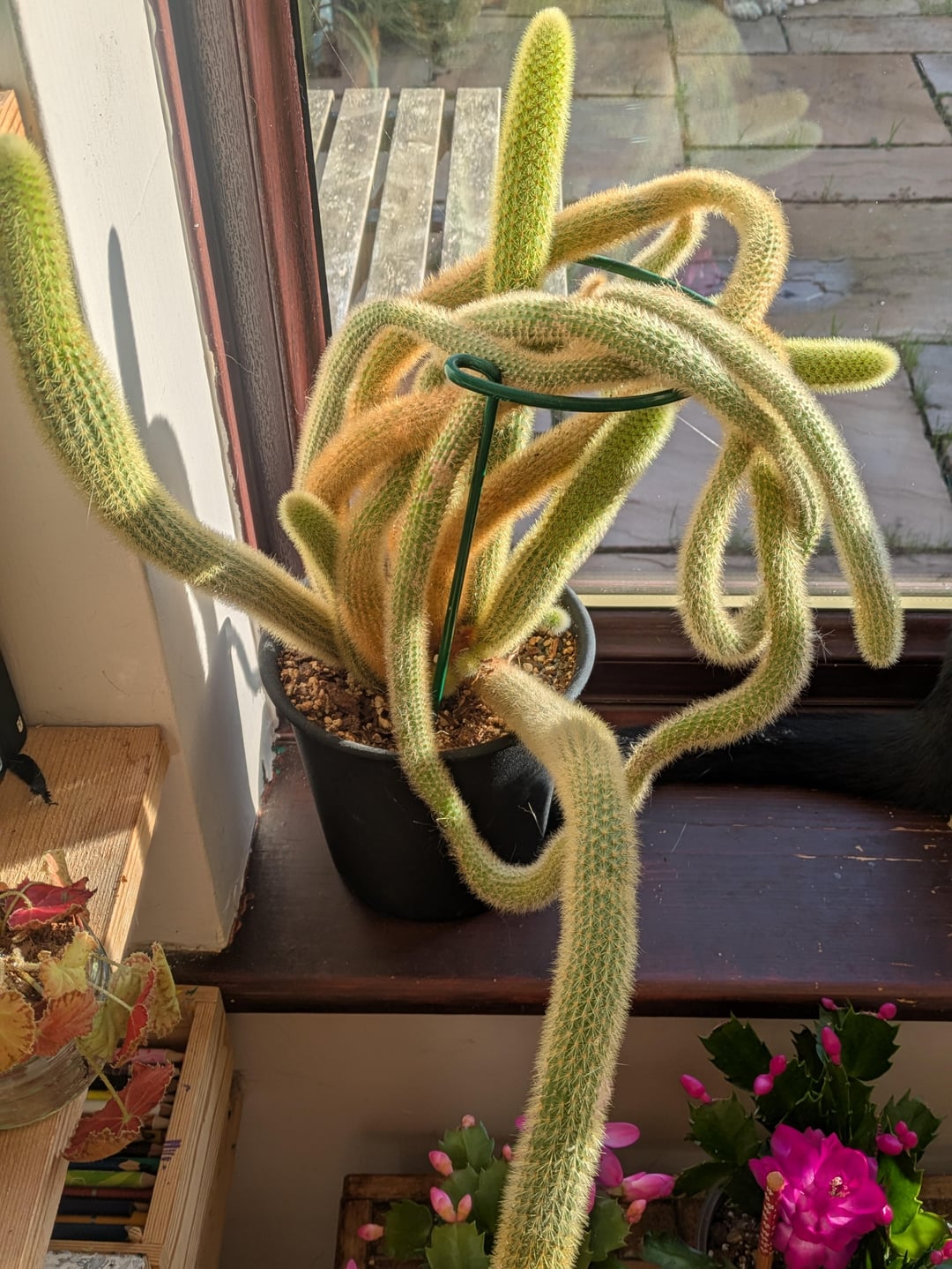 それで、私の同僚が約9年前にこのサボテンをスキップから救い出しました。会社が閉店したときに再び放棄されたため、私はそれを3年間持っていました。何を植え替えたのか、鉢に植えたのかよく分からず、明るい窓辺に放置してありました。土が乾いたら水やりをし、そのまま放置します。