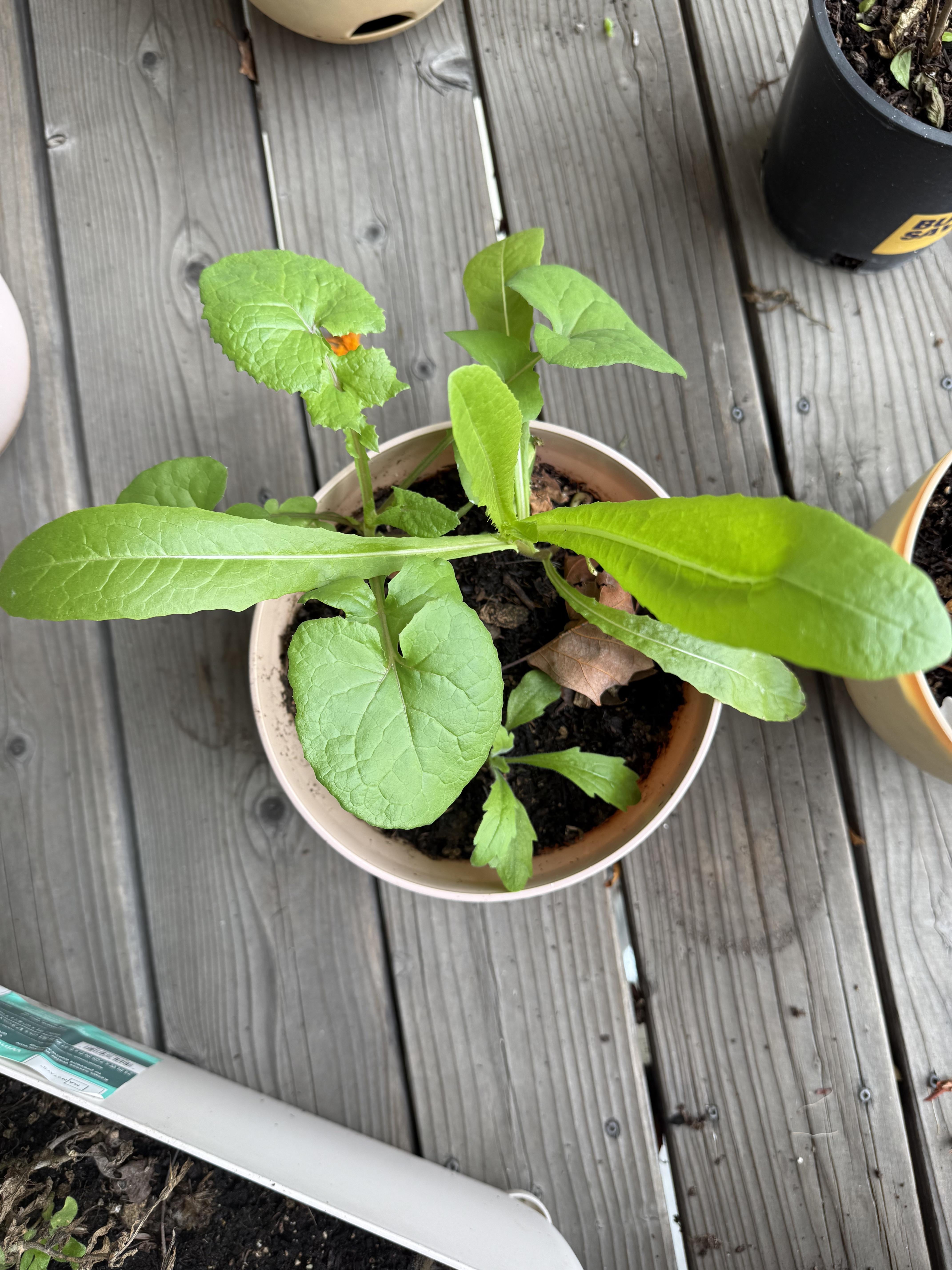 誰か、私のパティオの空の鉢に生えているこれらのランダムな植物を特定するのを手伝ってくれませんか。成長させるべきでしょうか?