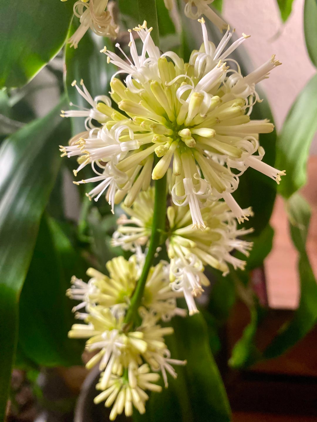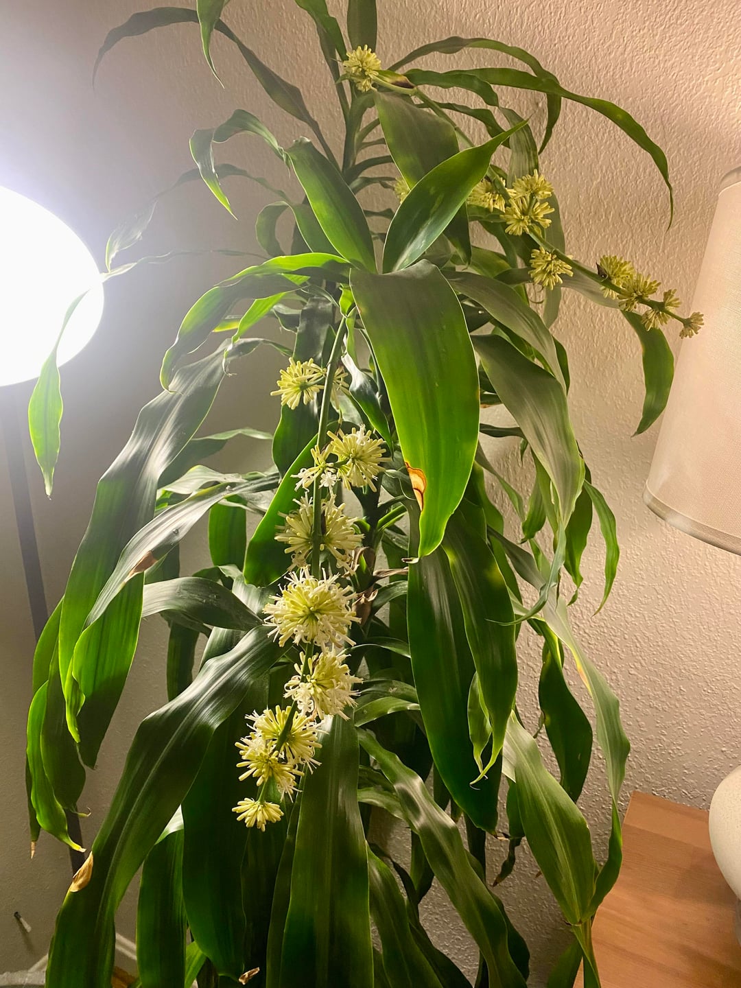 我が家のトウモロコシは先週から開花し始めました。 West Elm から入手して、約 18 か月使用しました。それは店の装飾品で、シーズンの終わりに処分される予定だった。 高さは約8フィートで、茎は3本あります。私たちはそれを50ドルで買いました。 花にはバラに似た強い香りがあります。とてもいいですね。みんなが休暇に参加する前に、とても素敵なサプライズができました