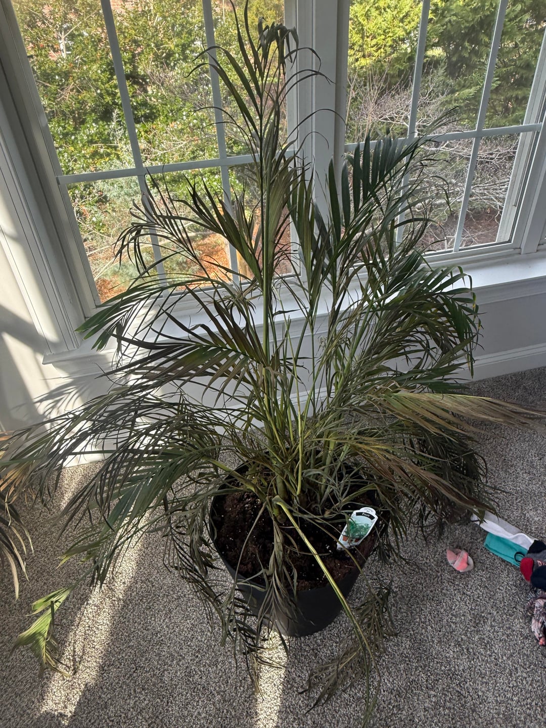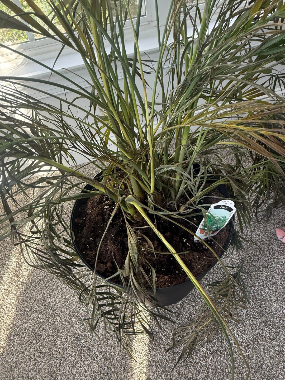 このヤシを 2 週間前に 10 ドルで購入し、もっと大きなヤシに植え替えましたが、手入れについてアドバイスが必要です。 2~3日おきに水やりをし、直射日光によく当てています。