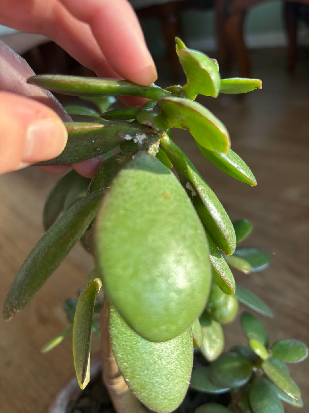私の植物はある種の疫病に見舞われています。その中でも最もひどいのは翡翠です。この白いものは何ですか?どうすれば治りますか?