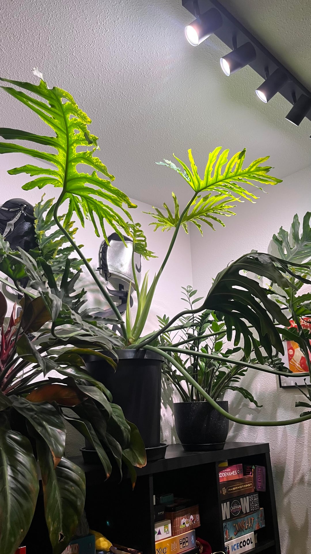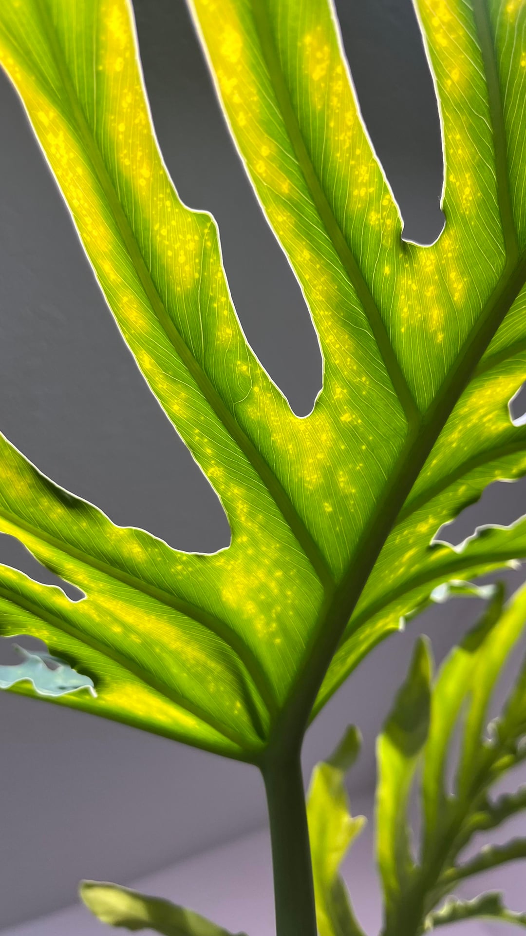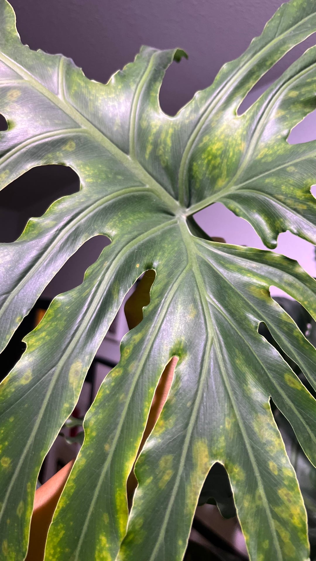 グローライトの近くにある葉は斑点が最も悪く、グローライトから遠く離れているが南の窓に面している葉は大丈夫のようです。この問題がこれに触れている植物に広がっていることに私は実際には気づきませんでした。育成ライトは1日12時間点灯します。