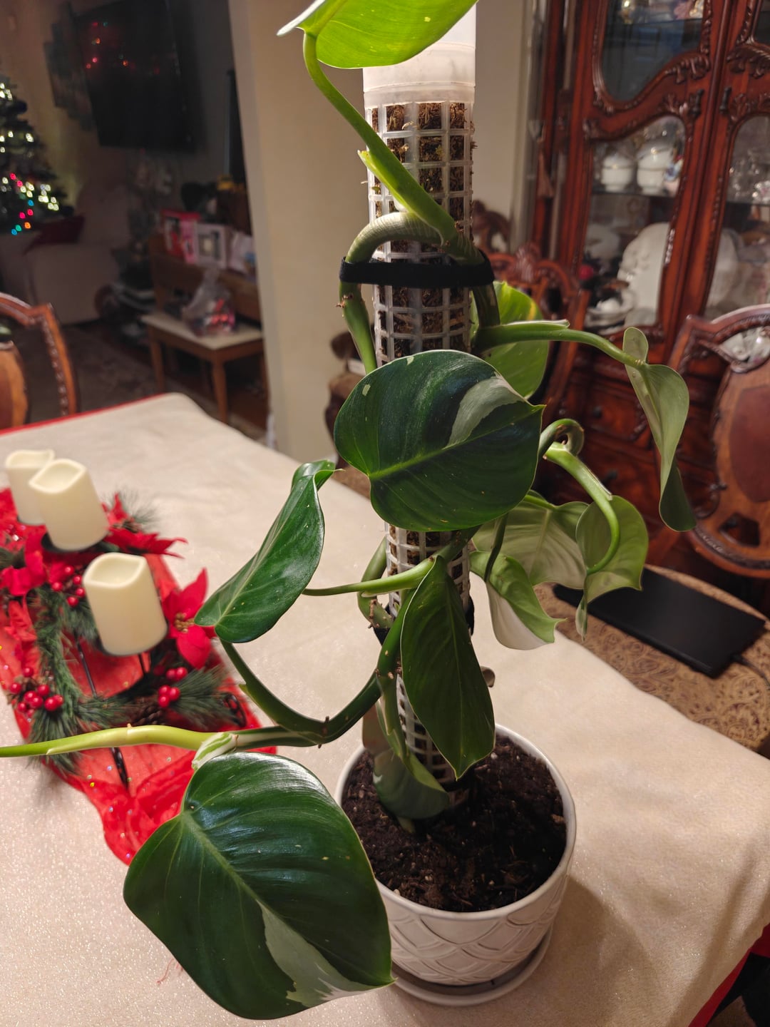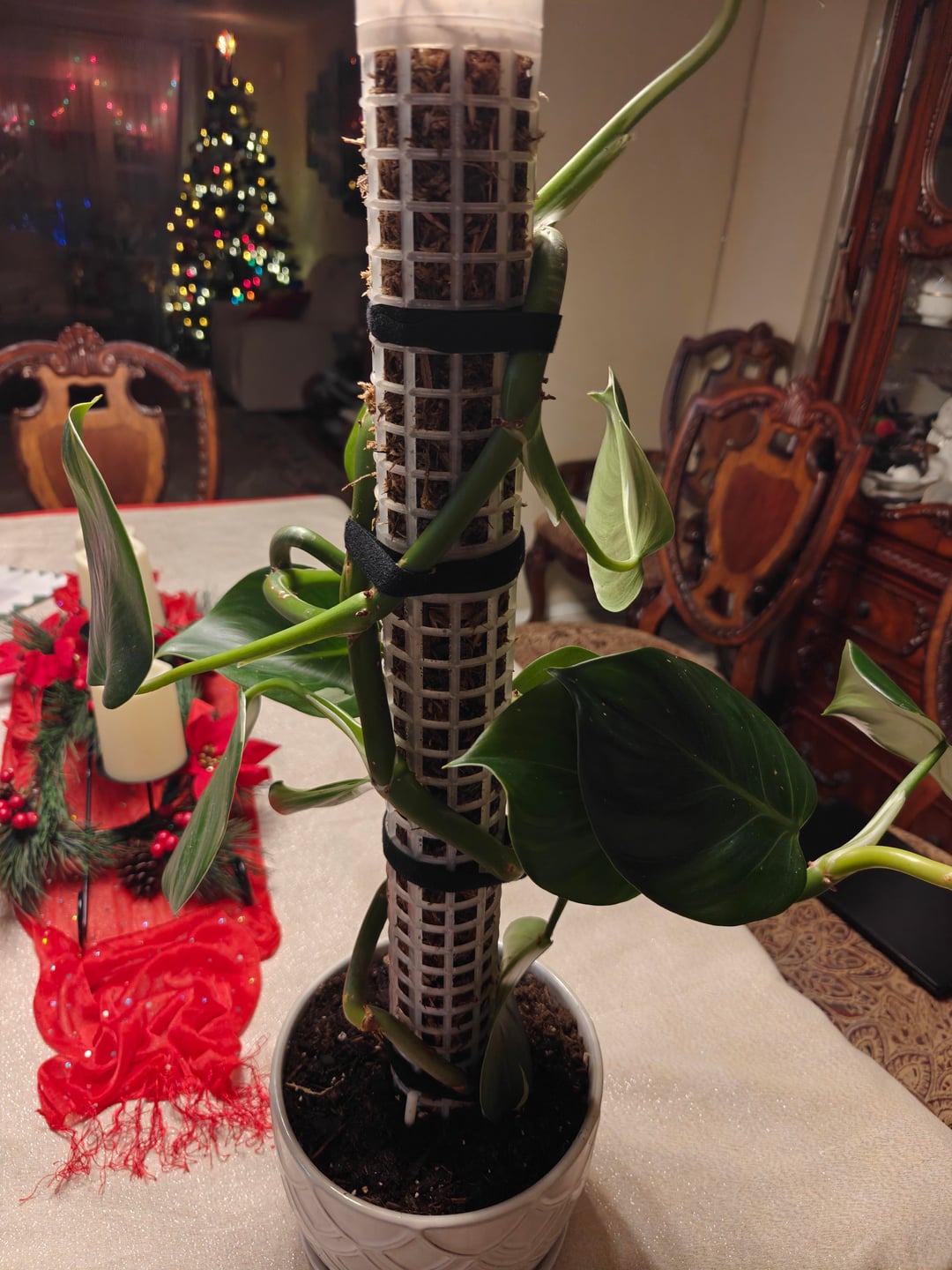 ウィザード用に苔のポールを購入しました 🪄 これが正しかったのか、それとも何か変更する必要があるのか知りたかっただけです。そこに苔を入れ、水をスプレーして全体が湿り、茎をファスナーで結びました。これはまだ幼い赤ちゃんのときにリドルから救出したもので(形が荒れていて、葉が3枚ほどしかありませんでした)、苔のポールを追加するのに少し時間がかかりすぎたことを認めます。苔のポールが存在することを知らなかったので、長い間鉢からぶら下がっているだけでした。これからさらに大きな葉を育てるお手伝いができればと思っています。アドバイスをいただければ幸いです。