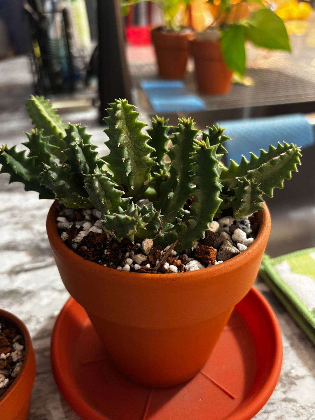 これをホワイトボードのようなものにして、いつ何を水をやったかを記録できるようにします。私は(多肉植物とサボテンに)非常にザラザラした基材を使用し、それらのほとんどをテラコッタの鉢に移したので、土がいつ乾いたかを判断するのは難しく、私はまだ植物を「読む」方法を学んでいます。さらに、テラコッタの鉢は私が慣れているものよりも早く乾きます。