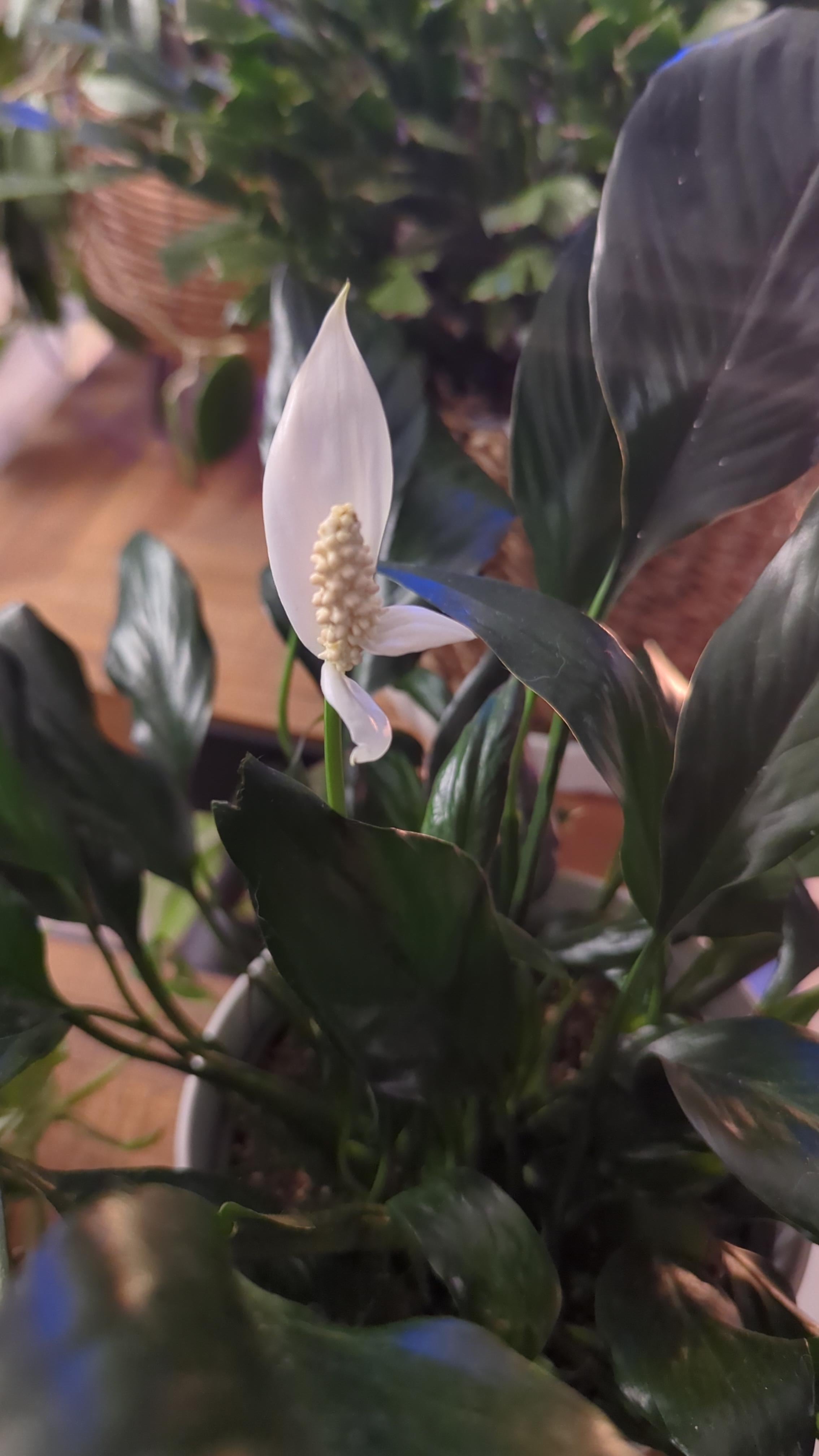 私のピースリリーの興味深い奇妙な花の制作を披露するためにここに来ただけです。こんなことは今まで見たことがありません!わーい!