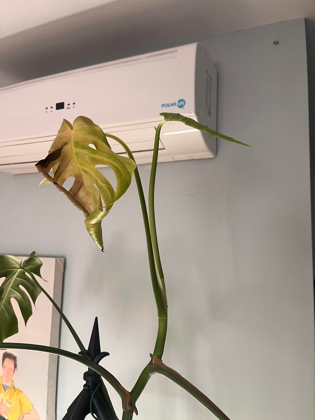約30センチメートルに成長したこの新しい葉。 1.5か月前、展開するのに非常に長い時間がかかり(展開が完了しませんでした)、黄色/茶色/枯れ始めました。新しい葉が生え始めていて、一見健康そうに見えるので、どういう理由が考えられるのか混乱しています。