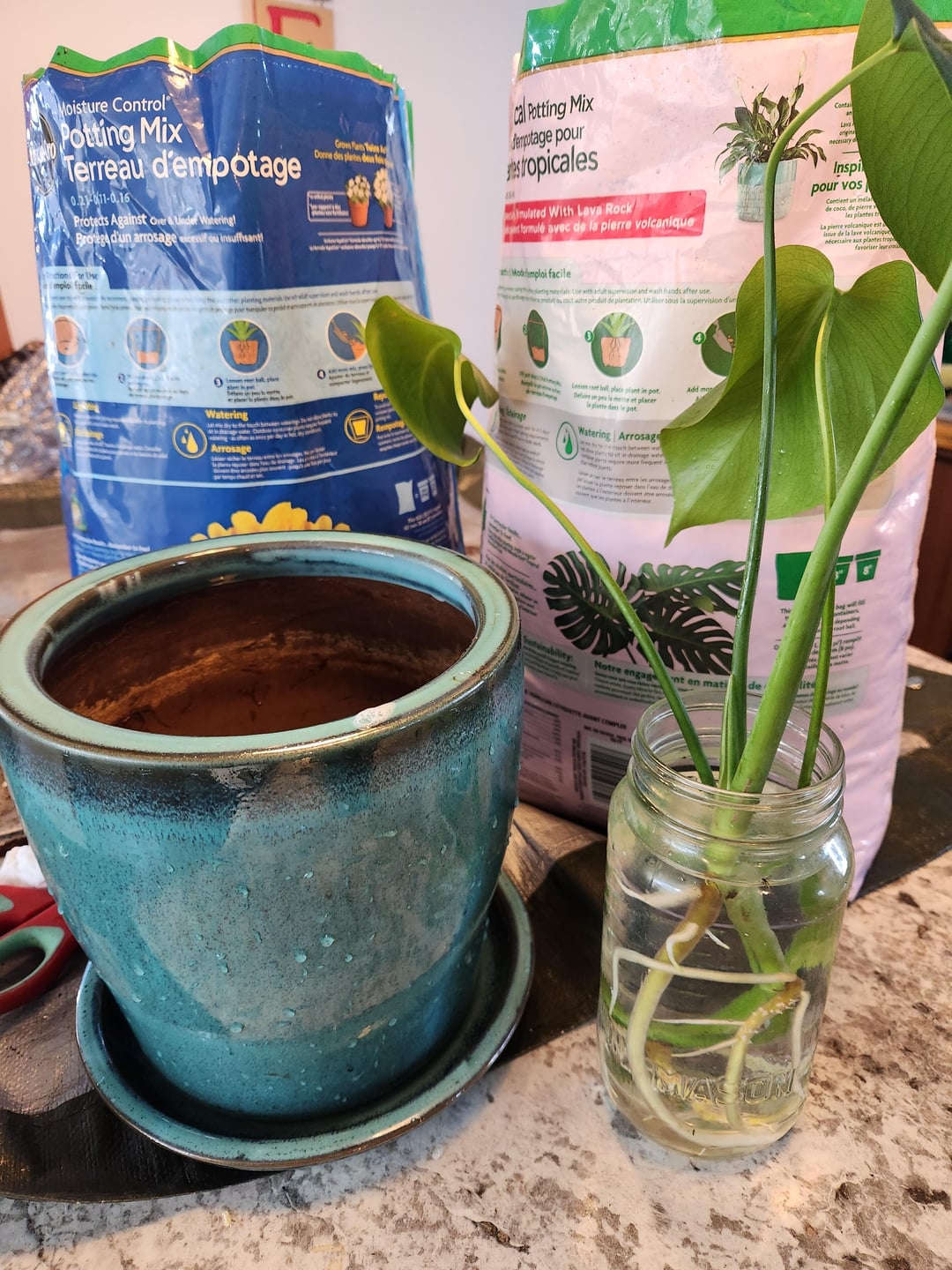 こんにちは。ついに、鉢植えにできるモンステラの挿し木を手に入れました。私が持っている鉢がサイズ的に良いと思いますか?挿し木には2つの主根と多くの枝が分かれています。 私の土壌の選択を判断しないでください(笑)….私がいる場所では選択が低いです 🙈 でも!大丈夫だと思っていただければ幸いです。 ありがとう!