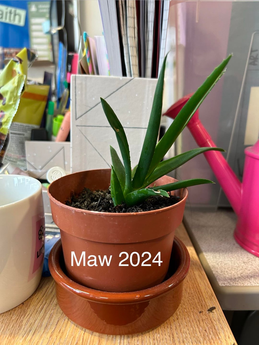 こちらはアルウィン、私のアロエです。彼は私の教室に住んでいて、子供たちの人気者です。これは私が生かしたことのない唯一の植物です。私が教えている子供たちの多くが、本来与えられている仕事をせずに水やりをするのが大好きなことが大きな原因だと思います。最初の写真は今月初めのものです。 2 番目 (PJ の非常に正確な写真をお許しください) は 2 月のもので、最後は 2024 年 3 月のものです。