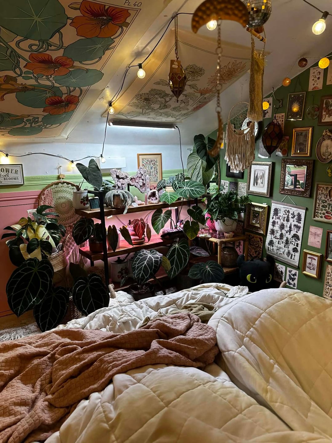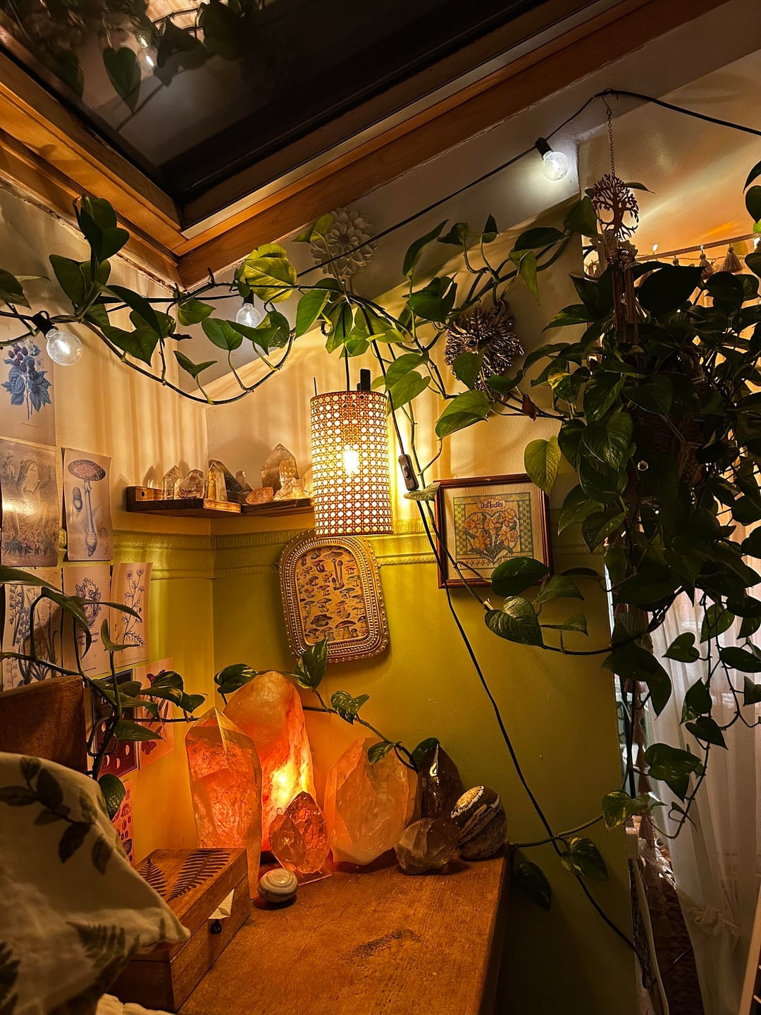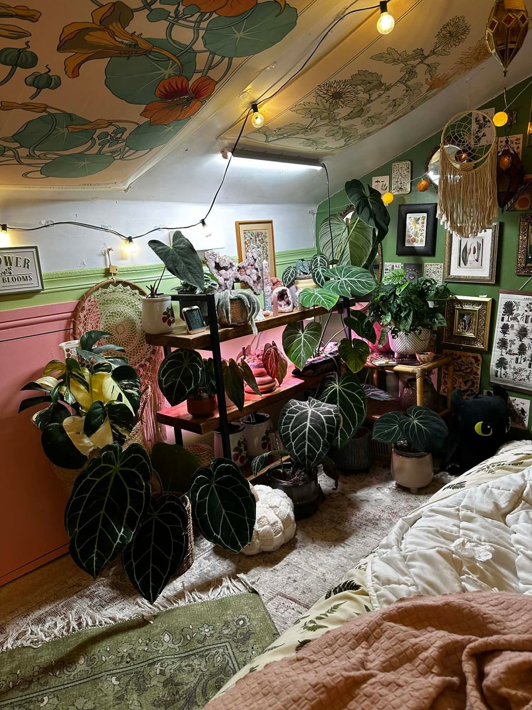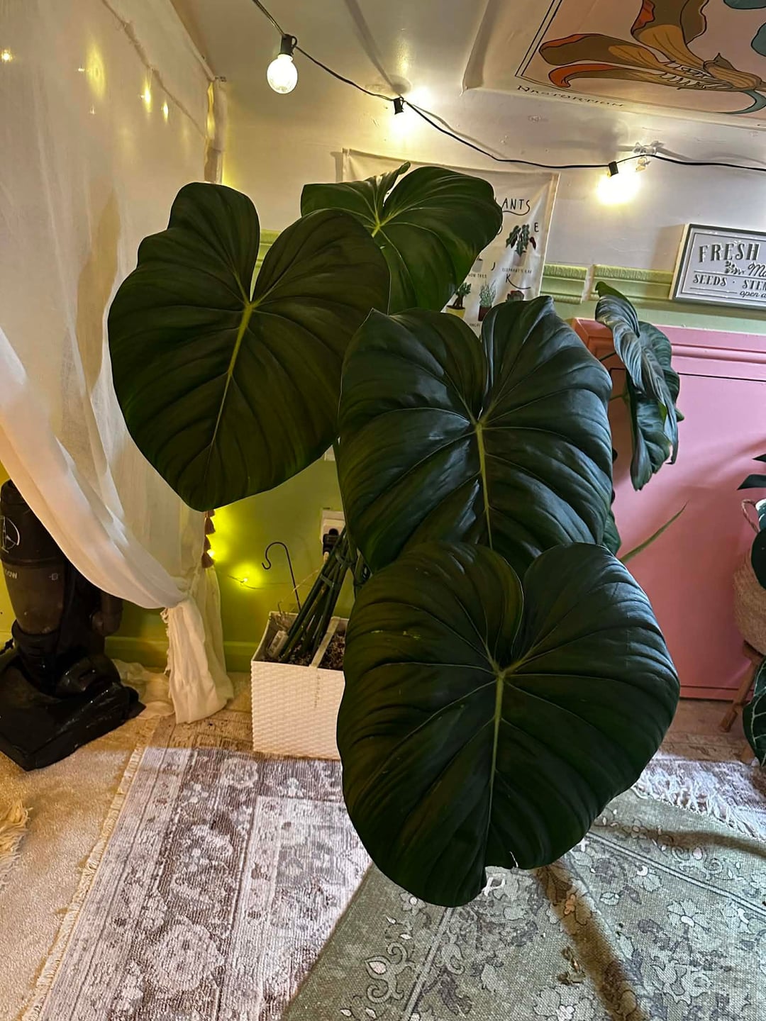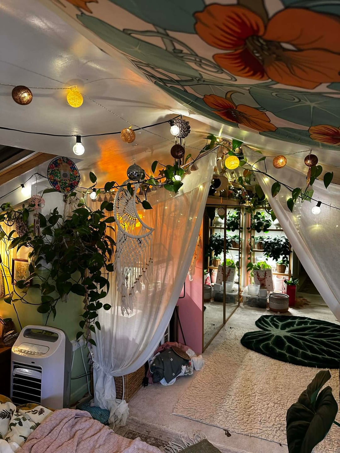 現時点では、これが基本的に私の毎日の部屋です。クリスマスに向けて新しい植物の棚を用意したいと思っているので、現時点では少し作業中です。栽培テントの中に植物を置いていますが、ゴールドのスターガーランドを飾っていて、可愛くて幸せそうだと思っていました。散らかっていても構いません 😂 すべてがきれいになり、棚が入手できたら設置したら更新することを約束します。 誰かが私にもここに投稿するように頼んだのです。