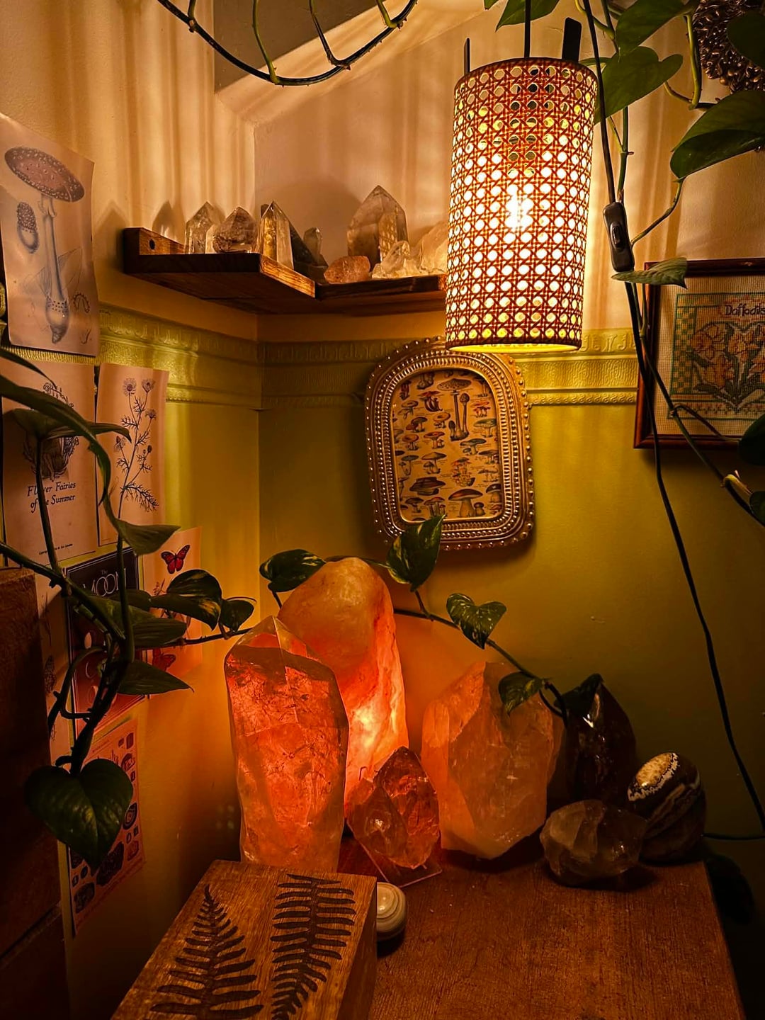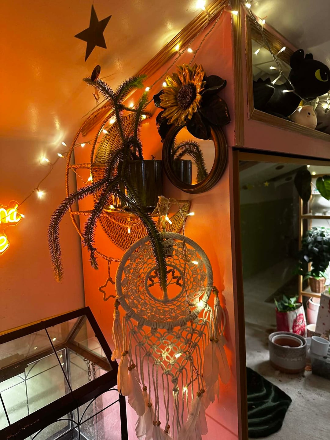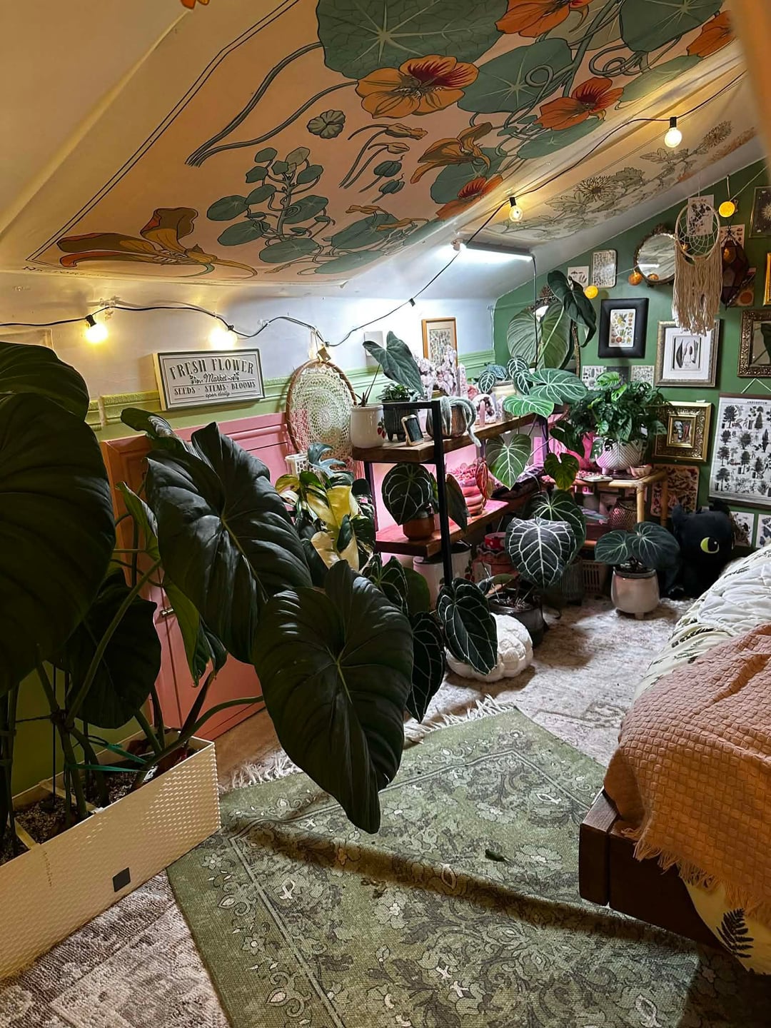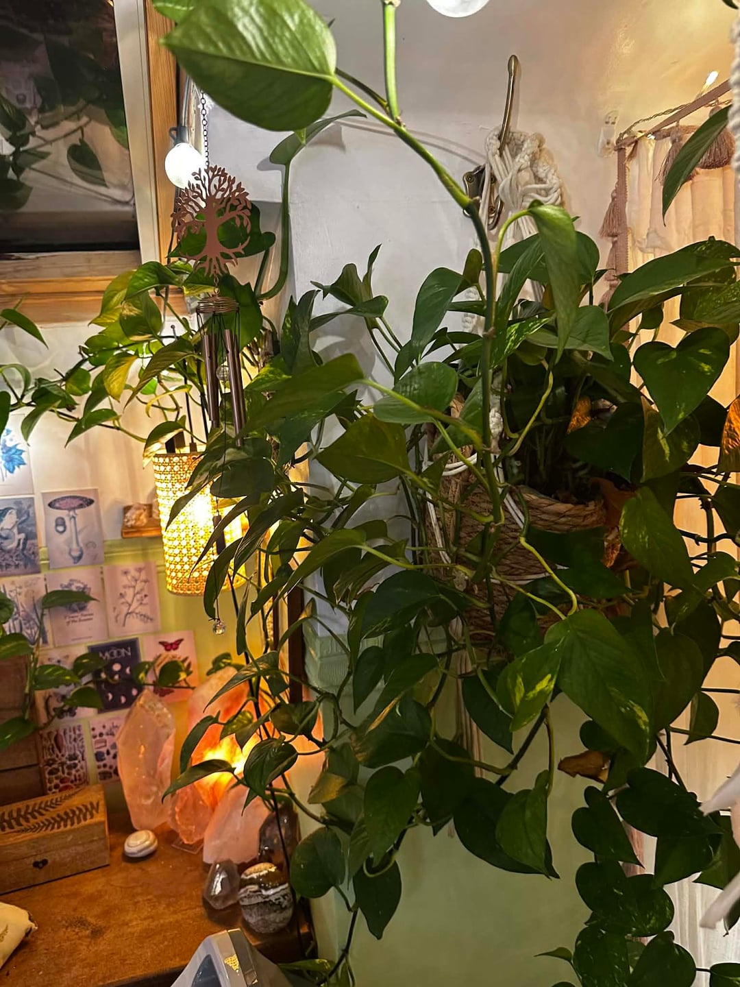 現時点では、これが基本的に私の毎日の部屋です。クリスマスに向けて新しい植物の棚を用意したいと思っているので、現時点では少し作業中です。栽培テントの中に植物を置いていますが、ゴールドのスターガーランドを飾っていて、可愛くて幸せそうだと思っていました。散らかっていても構いません 😂 すべてがきれいになり、棚が入手できたら設置したら更新することを約束します。 誰かが私にもここに投稿するように頼んだのです。