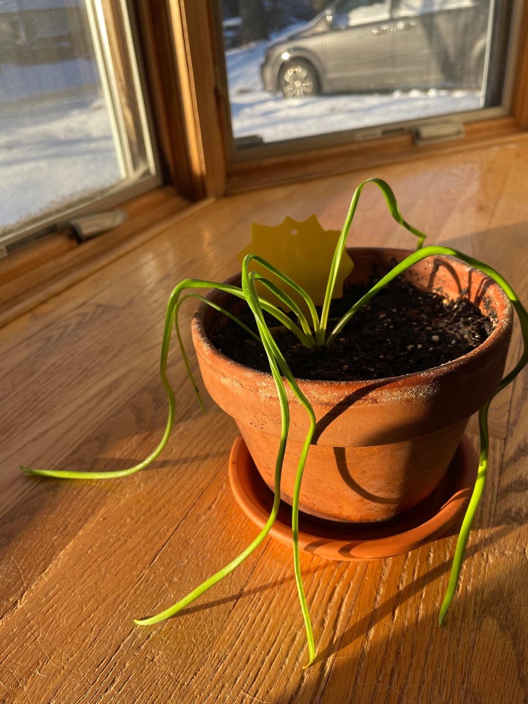 鉢の中でランダムな球根を発芽させました(私は無責任で怠慢な野郎で、土から球根を取り除かなかったためです)。 それが何なのか全く分かりません(私は無責任で怠慢な人間なので、 忘れっぽい 昨年の春にいくつかの異なる球根植物を手に入れたスカンプ)。 これはヒヤシンスに似ていますか? (グーグルレンズはそれをクモ植物かチャイブだと思います笑)