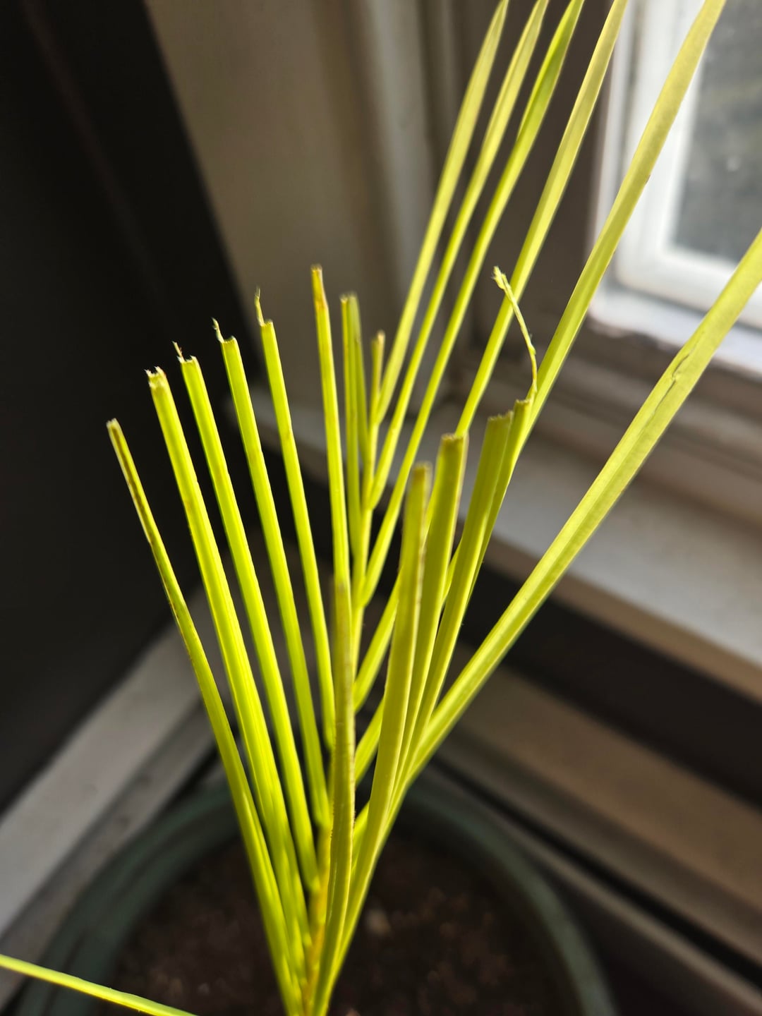 昨日、私のSILが猫をトイレに一緒に入れました。このヤシの木を救出して以来、初めての新しい成長物が入ってきました。半分は広げられ、半分はまだ広げられておらず、猫はそれを食べました。チョップしますか?保管しておきますか?心が折れました。植物を受け取ったときに枯れた成長物をすべて切り落とした後、この一枚の葉を育てるのに2か月かかりました。とても悲しいです。