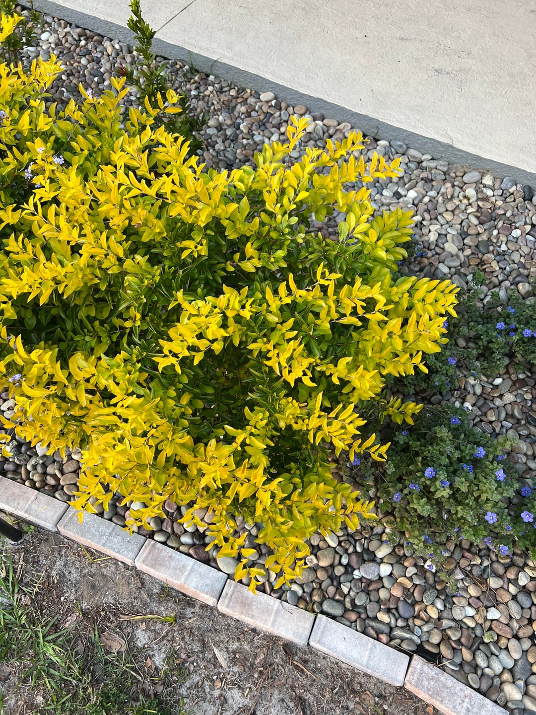 いくつかヒントをお願いします。私の植物のいくつかは黄色、茶色、白に変色しています。この問題はどうすれば解決できますか?小石の下の層はランドスケープファブリックです。それが問題なのでしょうか?私は毎日植物に水をあげます。正確に言うと、私はゾーン 9b に住んでいます。