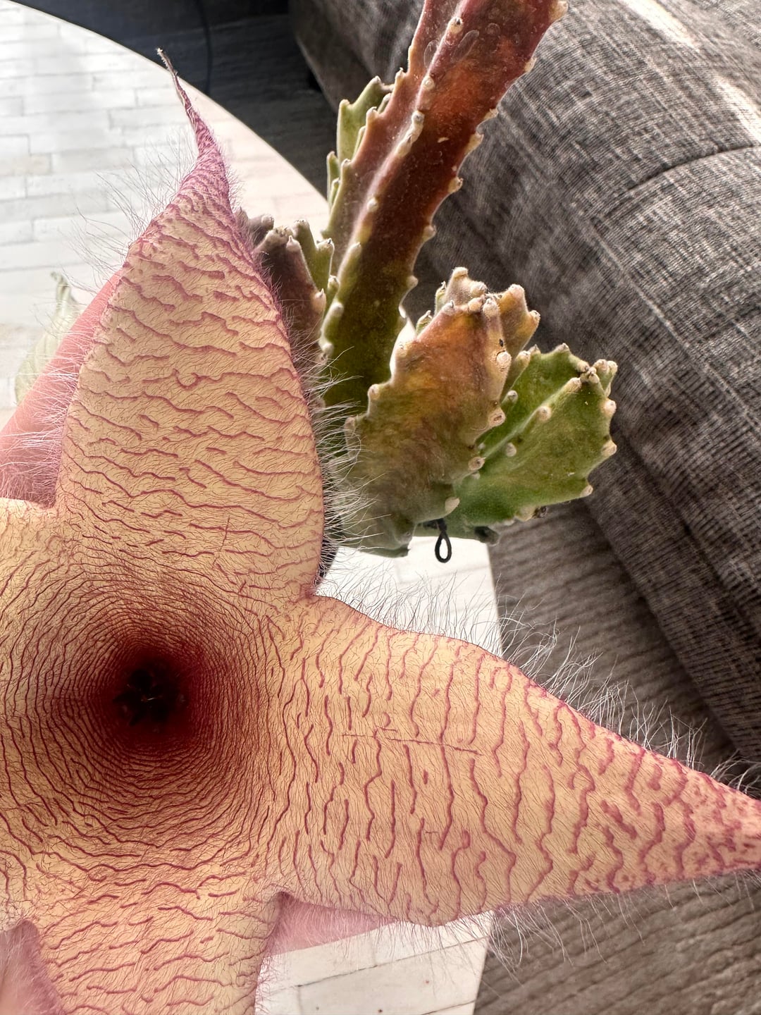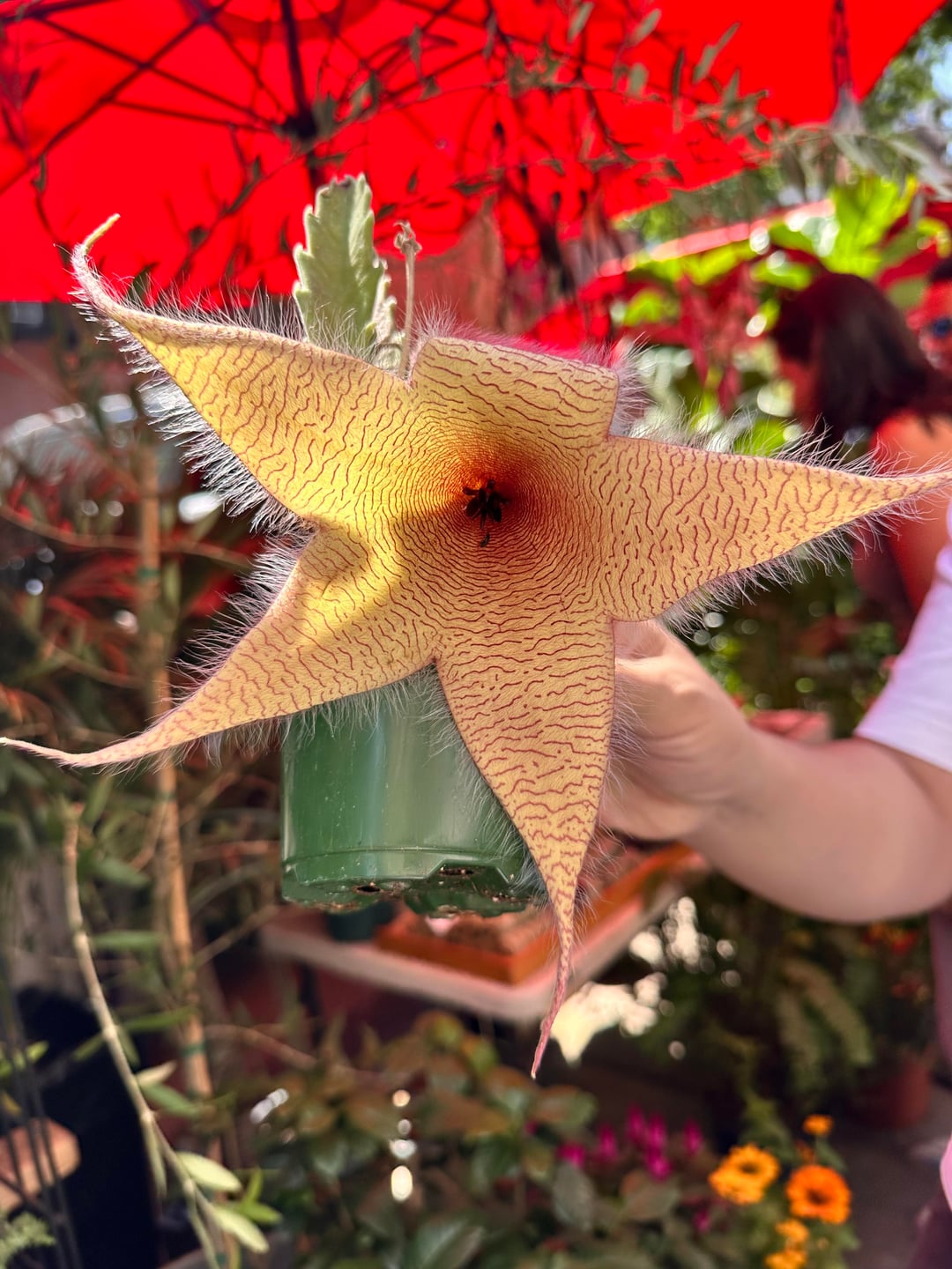スタペリアまたはヒトデの花と呼ばれています。多肉植物と同じように大切に育てています。花は3日ほどで枯れてしまいます。