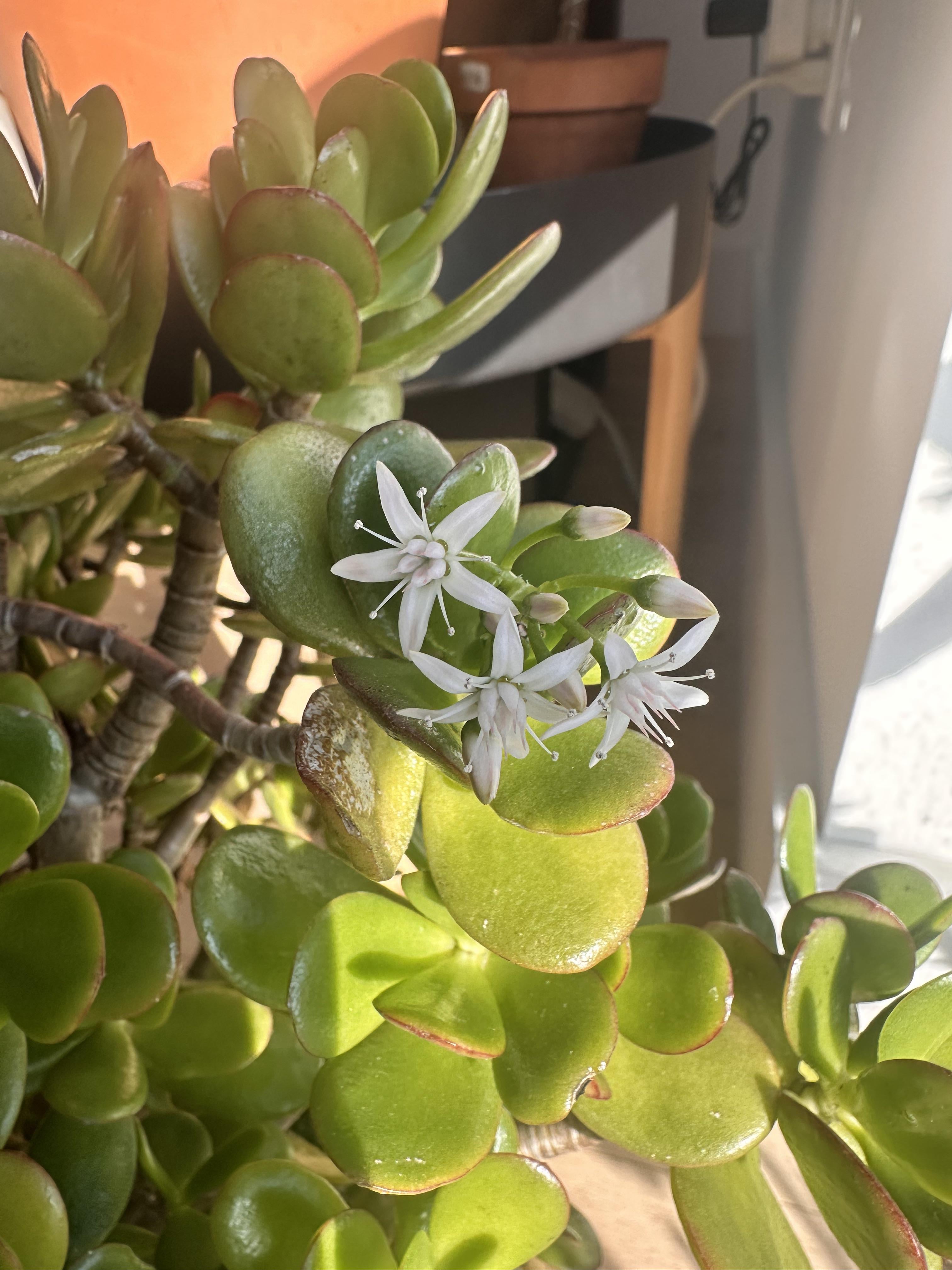 この翡翠は10年以上飼っていますが、初めて花が咲きました。