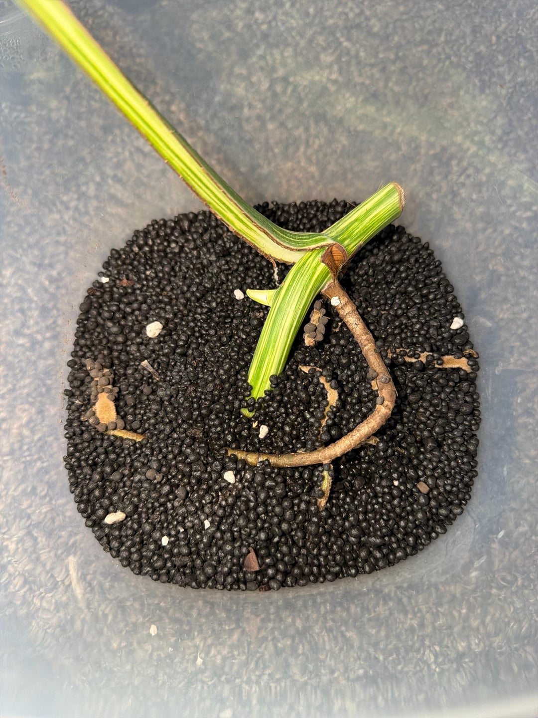 モンステラ アルボの挿し木を少し前に入手しました。これは私に新たな成長を与えてくれます。しかし今は少し停滞しているようです。冬ですが、私のミニ温室は半一定の環境を保っています。