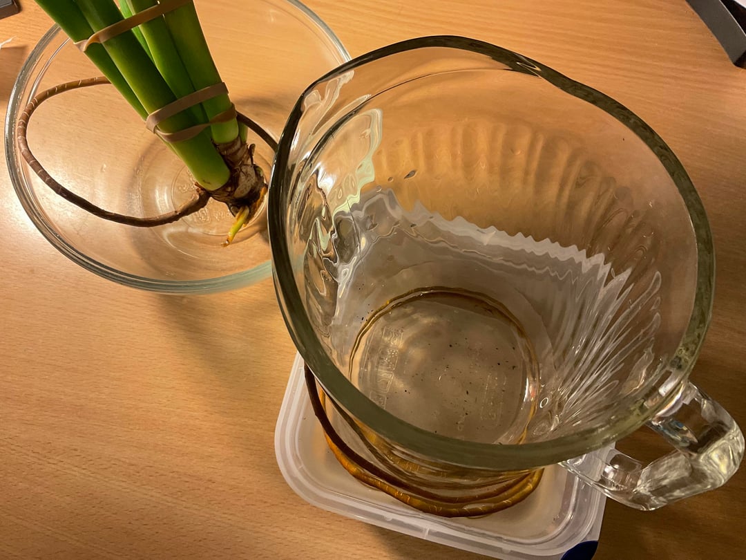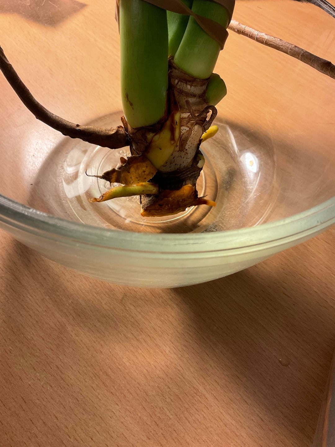 枝全体を増やすのではなく、根元のある部分を切り落とせばよいのではないかと考えたのですが、真ん中に深い切り込みができました (2 番目のスライド)。途中で間違いを犯したことに気づき、枝全体をそのまま取ることにしました。崩れないように輪ゴムをつけました。生き残る可能性を最大限に高めるために、それをカルスにし、水分補給のために気根を水に浸そうとしています。クレイジーな設定だとはわかっていますが、午前 3 時ですので、あまり騒音を出さないようにしながらなんとかしのいでいます。私はこれを正しくやっていますか?それは生きますか?