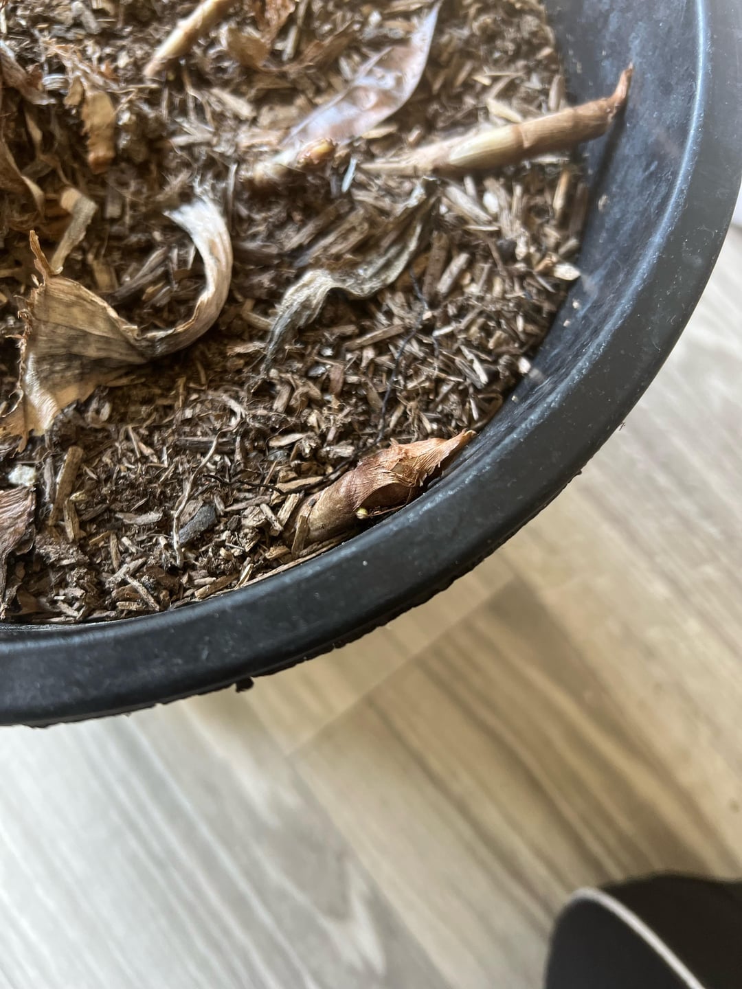 私の象の耳は間違いなく植え替える必要があります。これは私も知っています。大きなポットではないかもしれませんが、まっすぐに立てるべきだと思います。それにしても、土から突き出ているこの茶色い太い根のようなものは何でしょうか?そのうちの1つは、そこから新たな成長が起こっているように見えます。