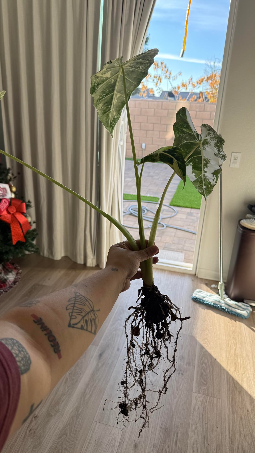 うちのクワズイモが「カオスが好き」というので、ポン(軽石、パーライト、炭混合)に植え替えました。根は予想していたよりもずっと荒れていて、球茎は数個残っており、15匹の赤ちゃんが落ちていましたが、まだ貯水池はありませんでした。癇癪が私を愛しているかどうかを決定する前に、私は癇癪を起こす準備ができていますか??いいえ。 🙂‍↔️