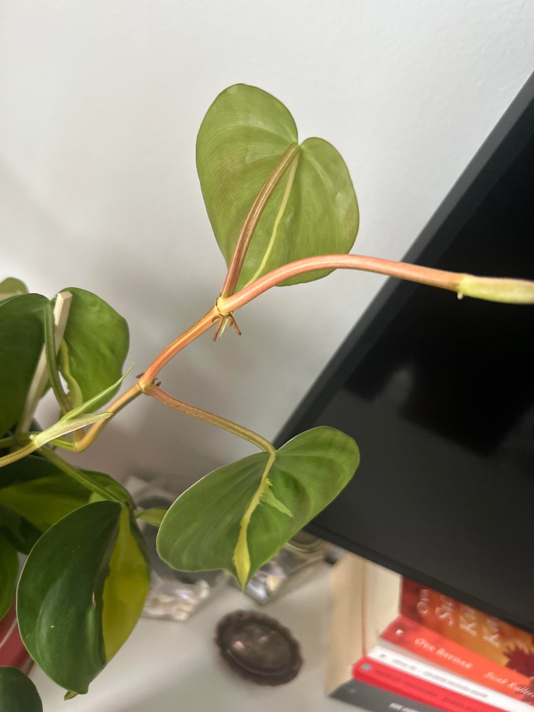 到着して以来、これらの両方はたくさんの新しい成長を与えて幸せです。しかし、ここ数日で茎が赤みを帯びていることに気づきました。